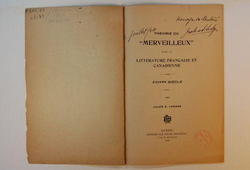 Livre (Théorie du merveilleux dans la littérature française et canadienne : XVIIeme siècle)