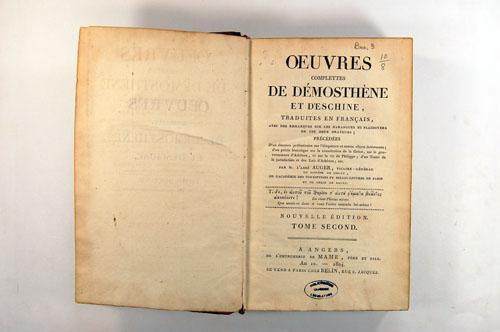 Livre (Oeuvres complettes de Démosthène et D'Eschine : traduites en franćais, avec des remarques sur les harangues et plaidoyers de ces deux orateurs, précédées d'un discours préliminaire... (Tome II))