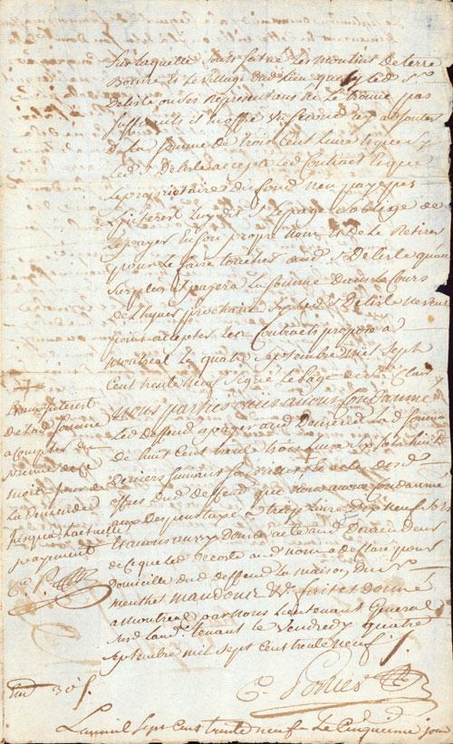 Document (Jugement contre Lepage de Ste-Claire en faveur de François Masson pour 833 livres)