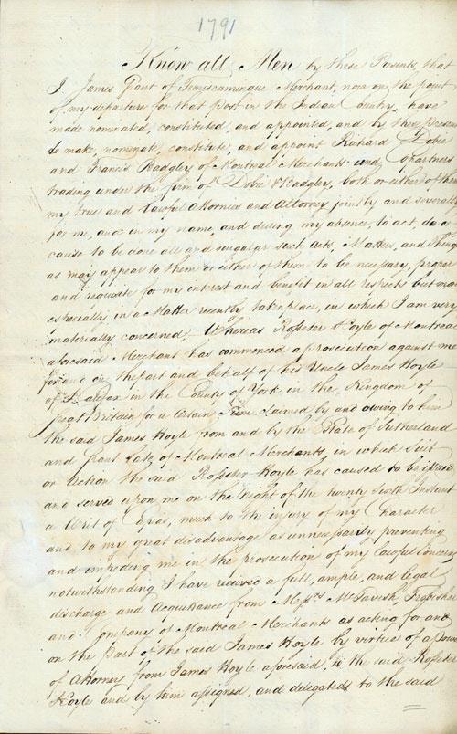 Document (Power of Attorney by James Grant to Richard Dobie and Francis Badgley in a case of prosecution against him by Rosseter Hoyle)