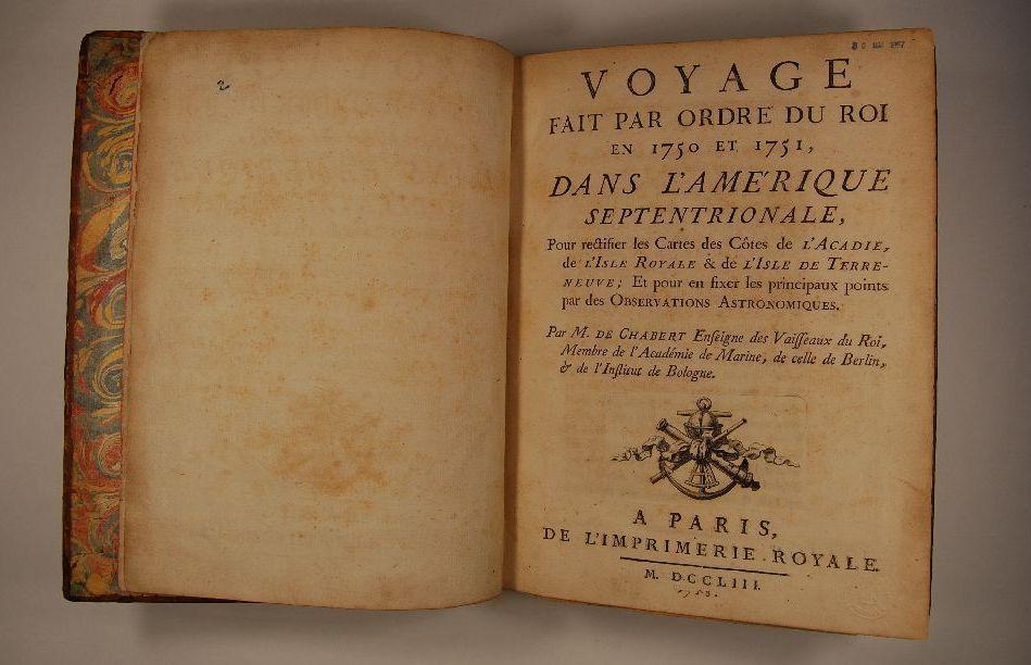 Livre (Voyage fait par ordre du roi en 1750 et 1751, dans l'Amérique Septentrionale : pour rectifier les cartes des côtes de l'Acadie, de l'isle Royale & de l'isle de Terre-Neuve : et pour en fixer les principaux points par des observations astronomiques)