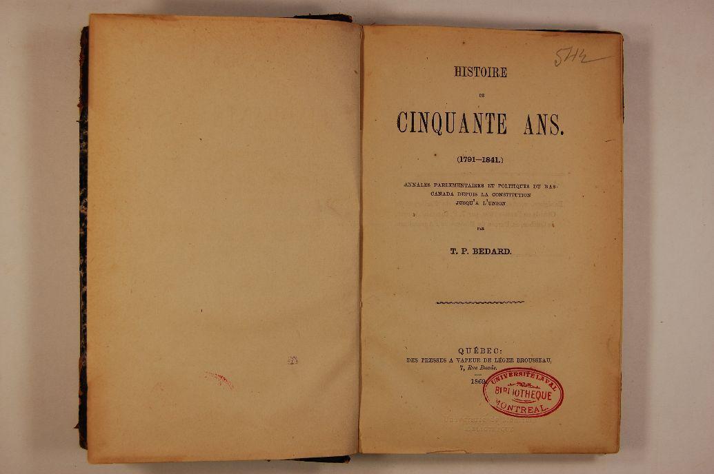 Livre (Histoire de cinquante ans (1791-1841) : Annales parlementaires et politiques du Bas-Canada depuis la Constitution jusqu'à l'Union)