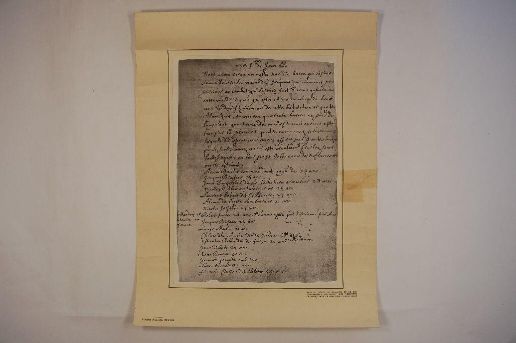 Document (Acte de décès de Dollard et de ses compagnons : reproduit des régistres [sic] de Notre-Dame de Montréal ; (3 juin 1660))