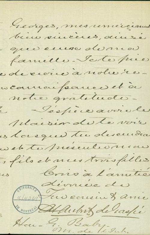Document (Lettre de A. de Gaspé à George Baby)