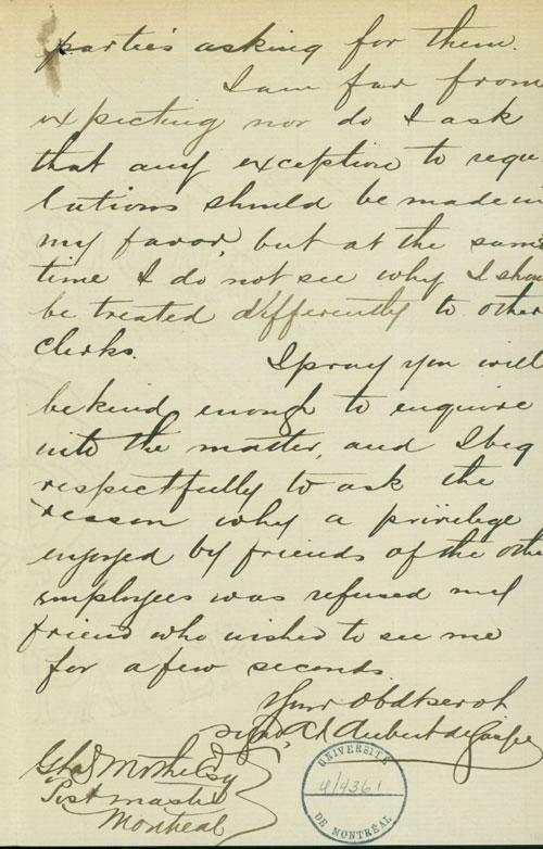 Document (Lettre de Alfred A. de Gaspé à George Baby)