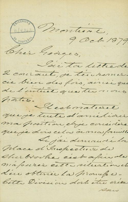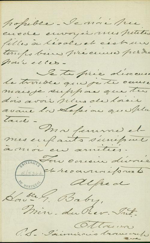 Document (Lettre de Alfred Aubert de Gaspé à George Baby)