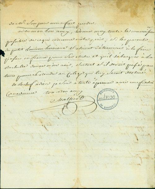 Document (Lettre de Malhiot à François Baby)