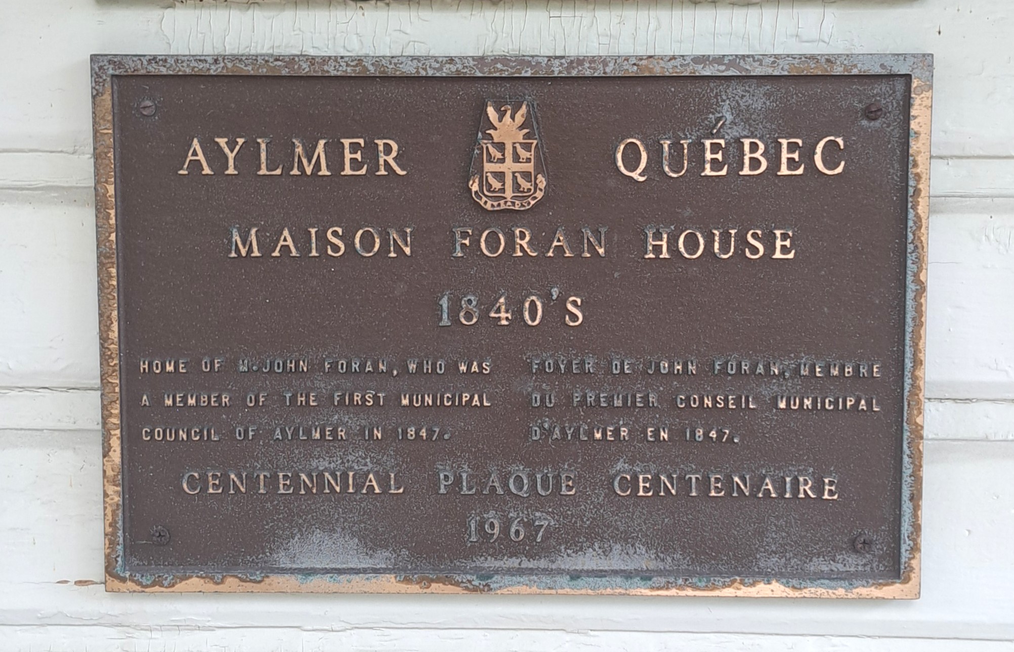 En 1883, John Foran rachète la maison au fils de Murphy. Il fut un des membres du premier conseil municipal d'Aylmer, en 1847. Foran possède déjà une spacieuse demeure en pierre située sur la route d'Aylmer, mais il aspire à vivre en ville pour profiter des dernières années de son existence.