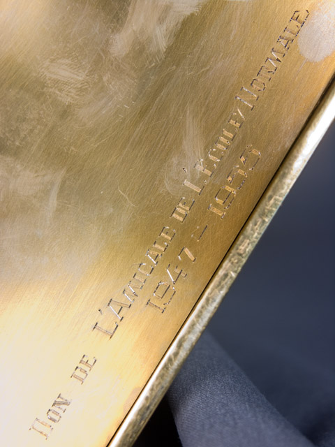 Sous l'ostensoir, c. : METAL / MADE / IN / FRANCE; sous l'ostensoir, d. : DON DE L'AMICALE DE L'ÉCOLE NORMALE / 1947-1955; autour de la lunule, c. : ET VERBUM CARO FACTUM EST; sous la lunule : 1153 / T; sur la poignée de la lunule : STERLING