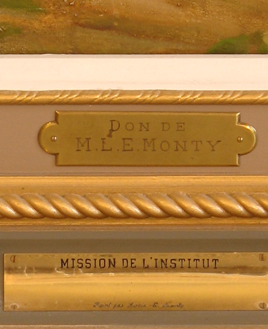 H.c. : AIMÉ SOIT LE COEUR DE MARIE AIMÉ SOIT LE COEUR DE JESUS; b.c., 1re plaque : DON DE / M. L. E.MONTY; b.c., 2e plaque : MISSION DE L'INSTITUT / Peint par Louis -E. Monty