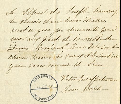Document (Lettre de Cécile Baby aux soeurs Baby)