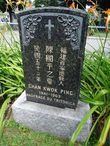 DÉRY (2007 : 29) rapporte l'existence dans le cimetière du Mount Hermon à Québec d'une série de sept petites pierres tombales identifiées de façon similaire : TRITONICA SHIPWRECK/July 20th 1963/NEAR QUEBEC, ce qui confirmerait que, parmi les huit naufragés du Tritonica inhumés à Québec, le seul inhumé au cimetière Saint-Charles est Chan Kwok Ping.