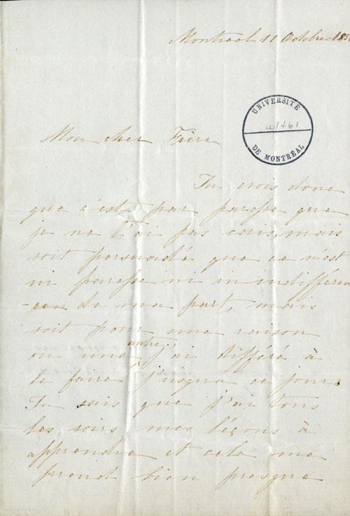Document (Lettre de Marie-Cordélia Baby à son frère)