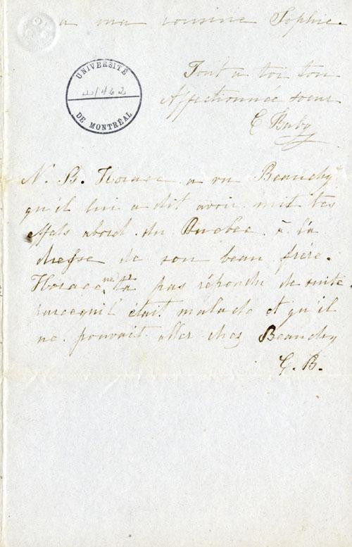 Document (Lettre de Marie-Cordélia Baby à Louis-François-Georges Baby)