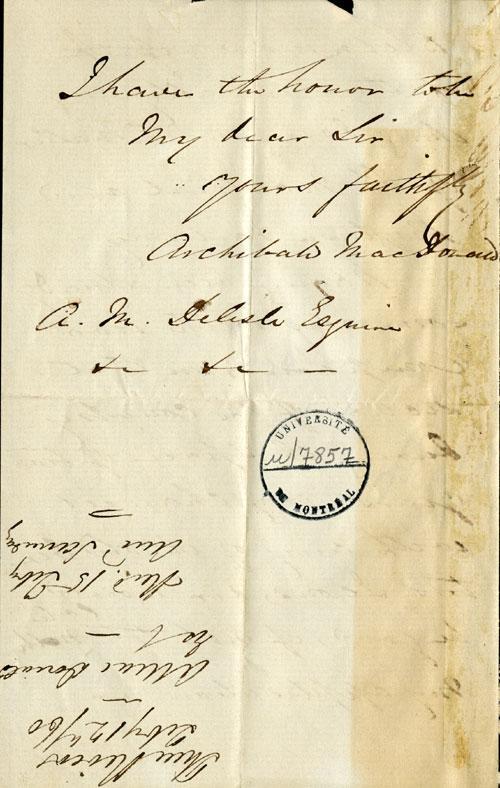 Document (Lettre d'Archibald MacDonald à A.M. Delisle)