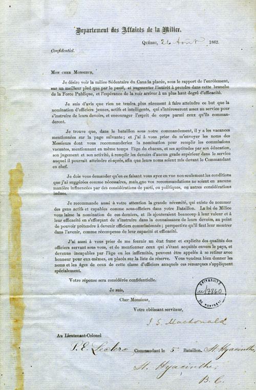 Document (Lettre de J.S. Macdonald à P.E. Leclerc)