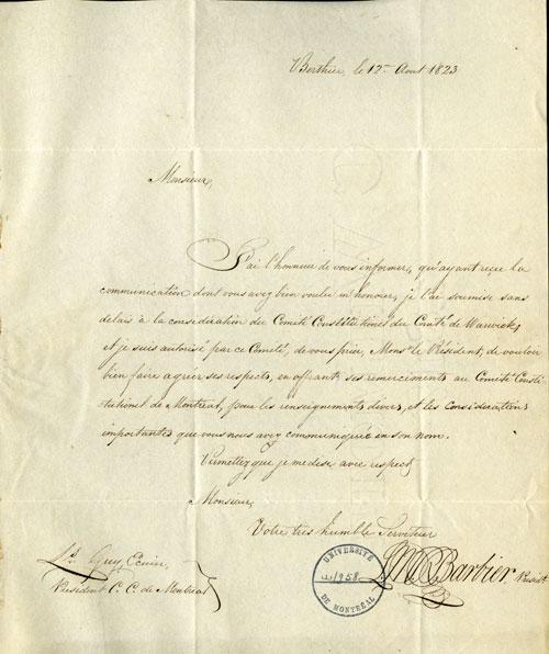 Document (Lettre de L. M. R. Barbier à Louis Guy)