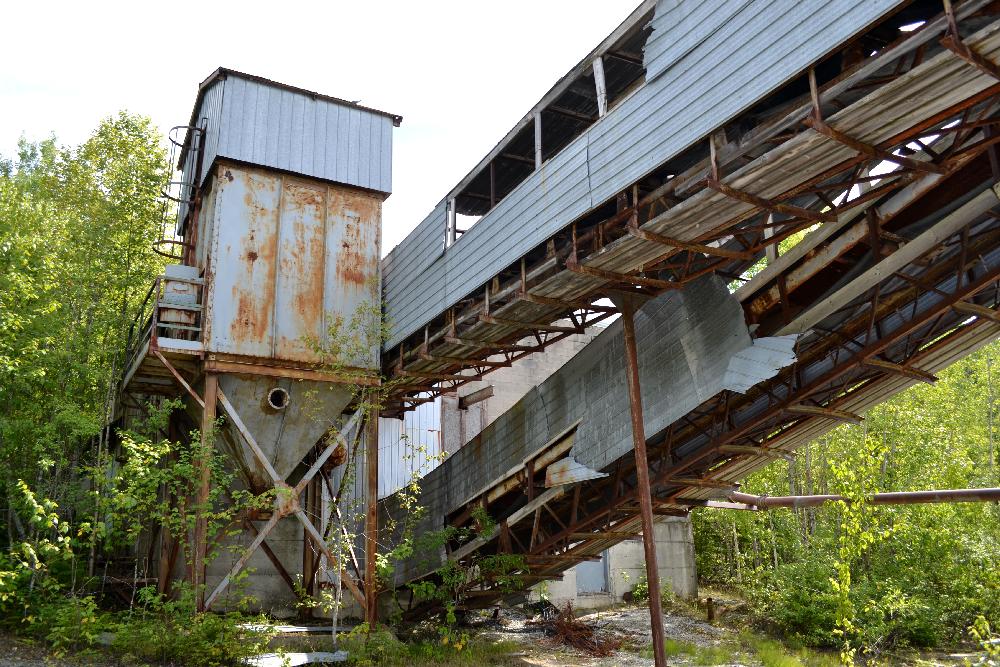 Les trois autres installations sur le site sont les deux bâtiments des concasseurs et celui de l'usine. Le concasseur primaire, de plan rectangulaire, façonnait des blocs d'un pied, tandis que le concasseur secondaire, de forme cylindrique, produisait des morceaux de 3 à 4 pouces. Ces concasseurs sont reliés entre eux, ainsi qu'à l'usine, par des convoyeurs recouverts de tôle profilée. L'usine construite en brique de béton, contient encore tous les équipements nécessaires à l'exploitation, mais la plupart ont été endommagés. Une partie du mur a été démontée de sorte que les madriers sont exposés. De plus, plusieurs moteurs, pompes, panneaux électriques et transformateurs ont été dérobés dans les années 2000. Plusieurs pièces de métal ont aussi été démontées et placées à l'extérieur de l'usine. Celle-ci n'est donc plus en état de marche.