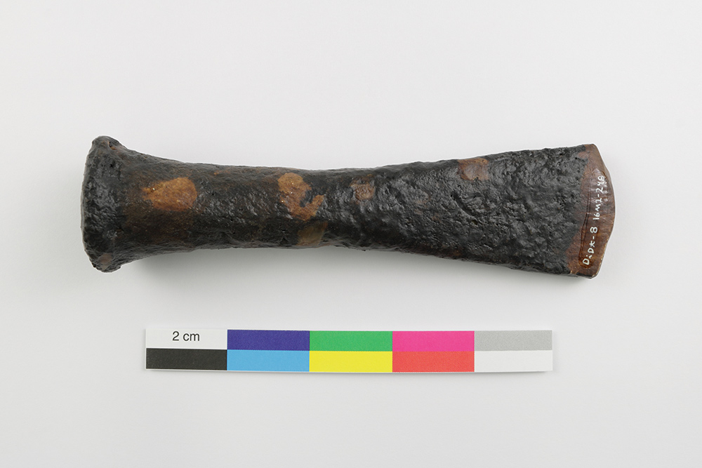 La collection archéologique du « Elizabeth and Mary » comprend plusieurs modèles de ciseaux à calfater. Celui-ci est le plus petit de la collection.
