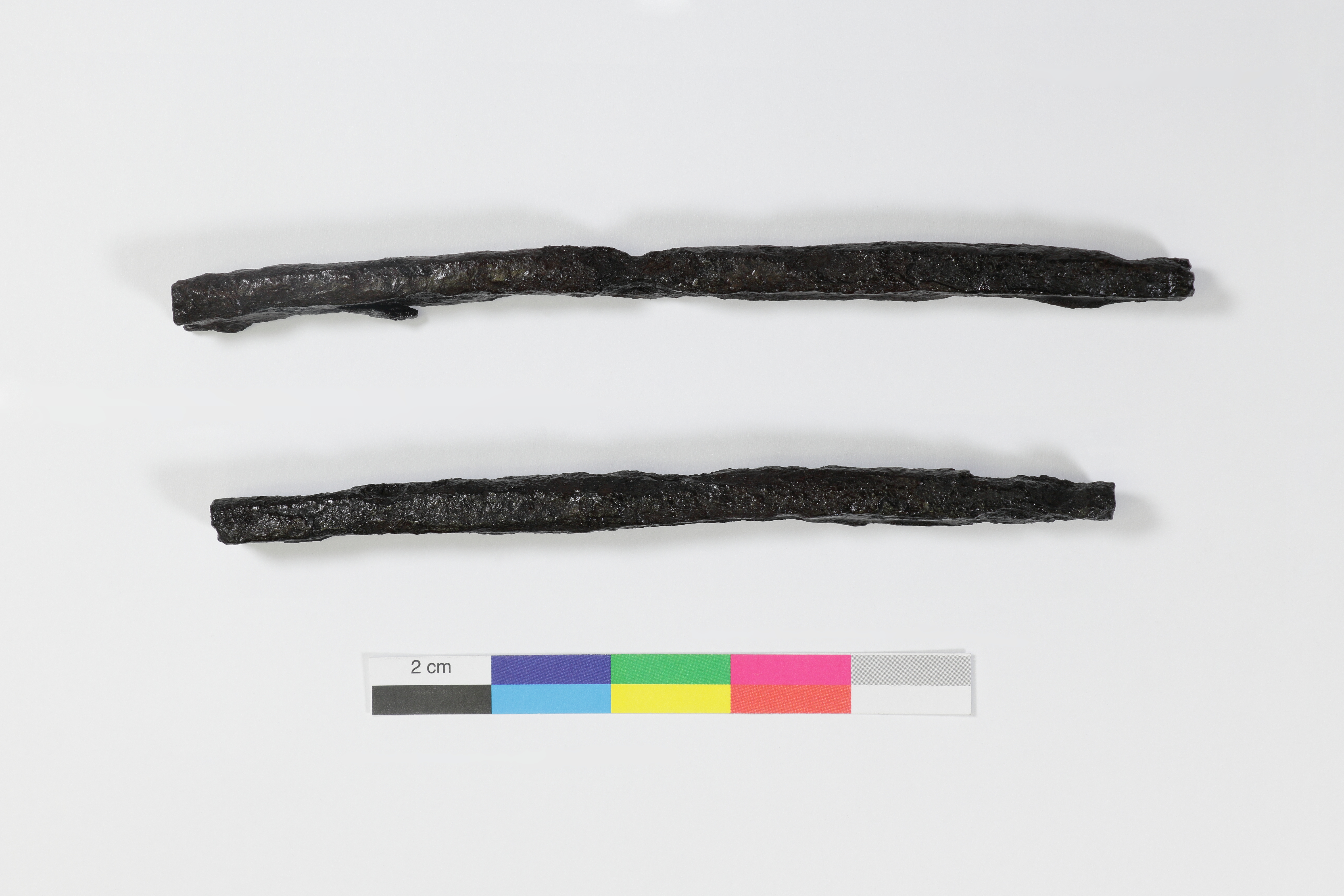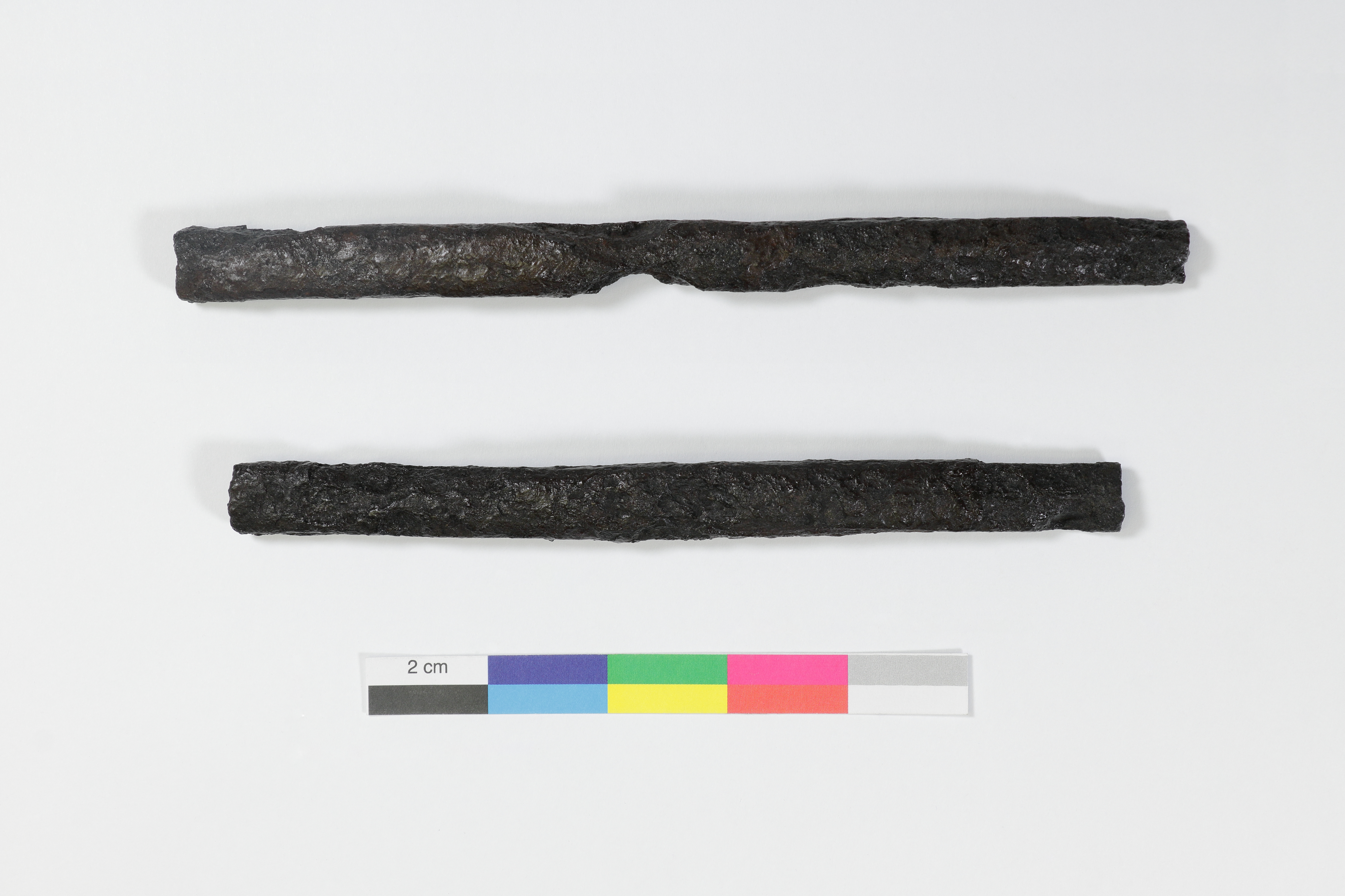 Les fragments de tiges sont liés au travail du métal et proviennent d'un contexte archéologique daté entre 1643 et 1665. L'artéfact compte deux fragments de tiges en fer. Le plus long mesure 16,4 cm de longueur, 1,2 cm de largeur et 0,9 cm d'épaisseur. Les fragments de tiges sont de forme rectangulaire et sont cassés inégalement aux extrémités.