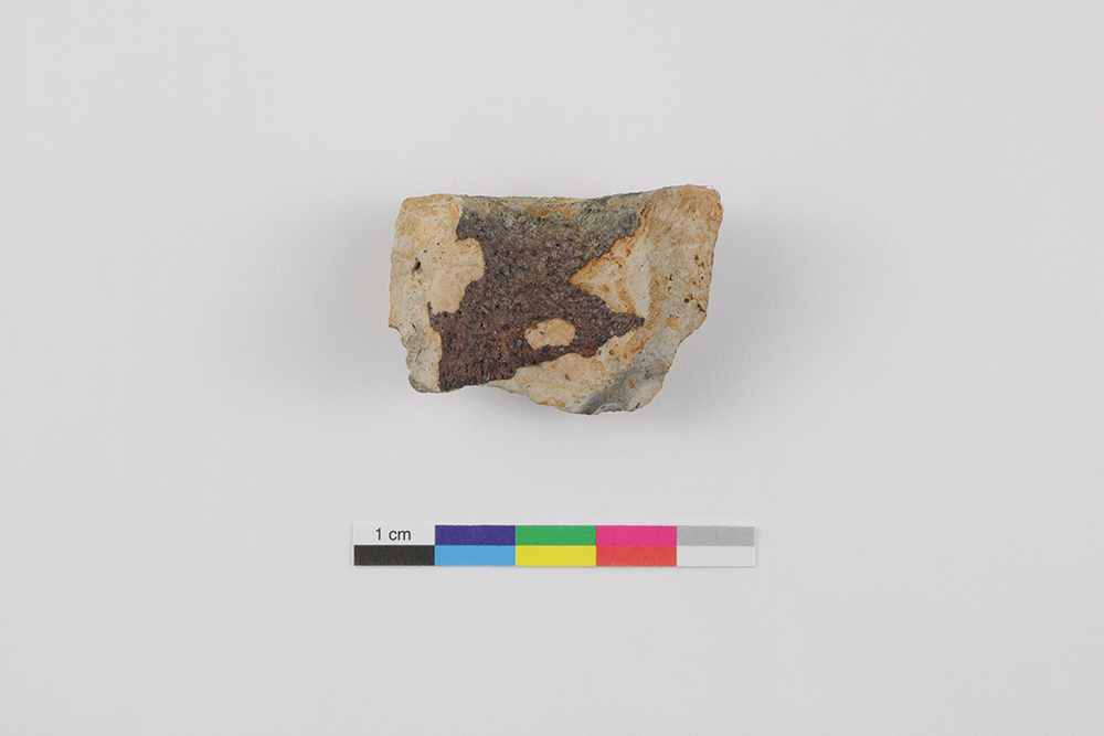 L'artéfact est mis au jour en 1988 sur le site de l'îlot des Palais, à Québec, dans la salle centrale (salle 4) des caves du premier palais de l'intendant. Cette salle est utilisée par les intendants de Nouvelle-France entre 1684 et 1713. Les artéfacts retrouvés dans ce lieu sont de deux natures différentes. Ils consistent en marchandises qui appartenaient au roi et en articles d'usage domestique utilisés par les intendants. Les marchandises, distribuées dans la colonie, servent à l'armement. Les articles d'usage domestique indiquent que les intendants se servent de cette salle des caves, du moins peu avant le feu de 1713, pour l'entreposage d'une portion de leurs biens, notamment des articles en céramique et en verre.