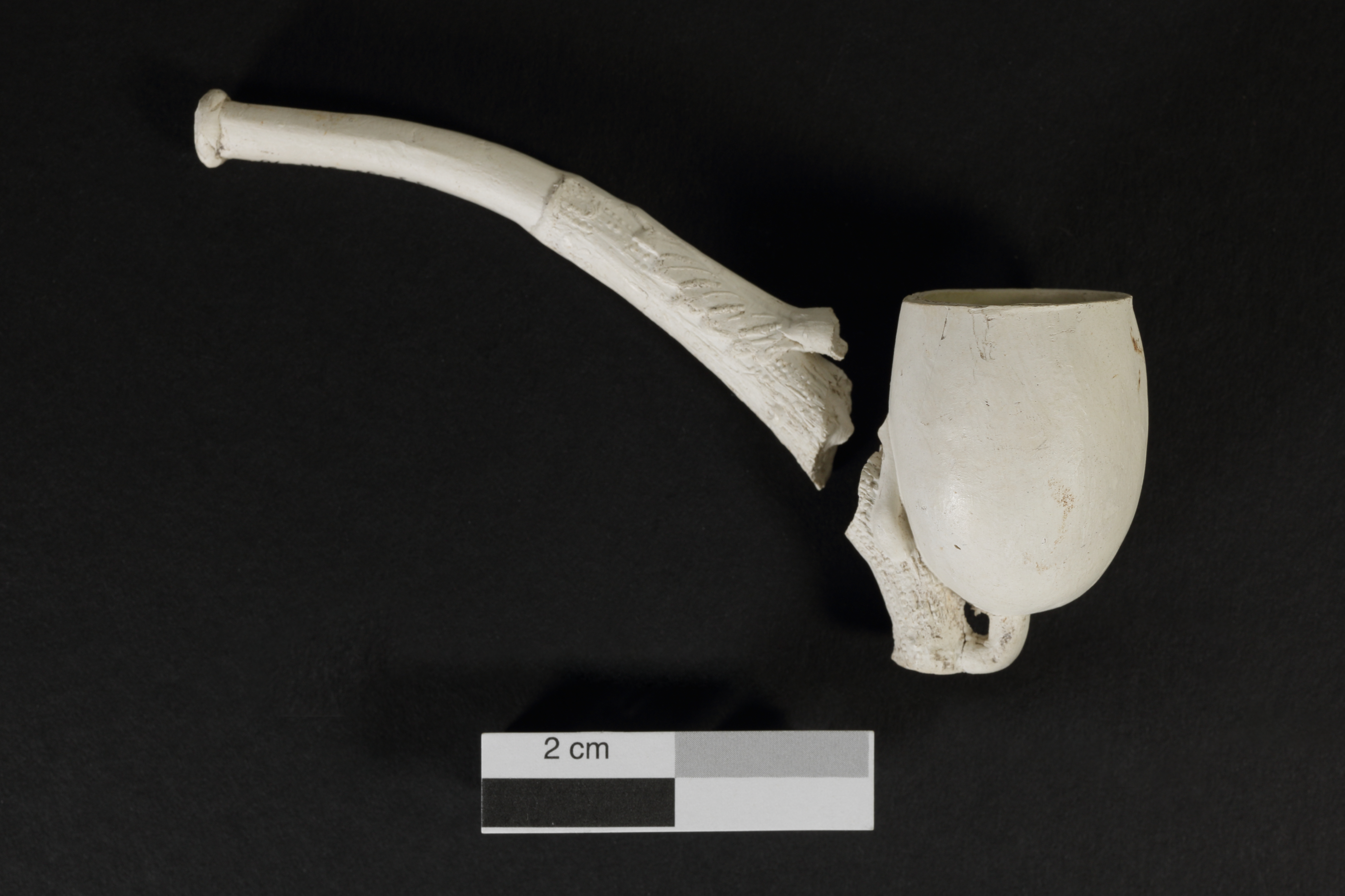 L'artéfact est mis au jour en 2005. Seules quelques pipes de ce modèle sont mises au jour sur ce site.