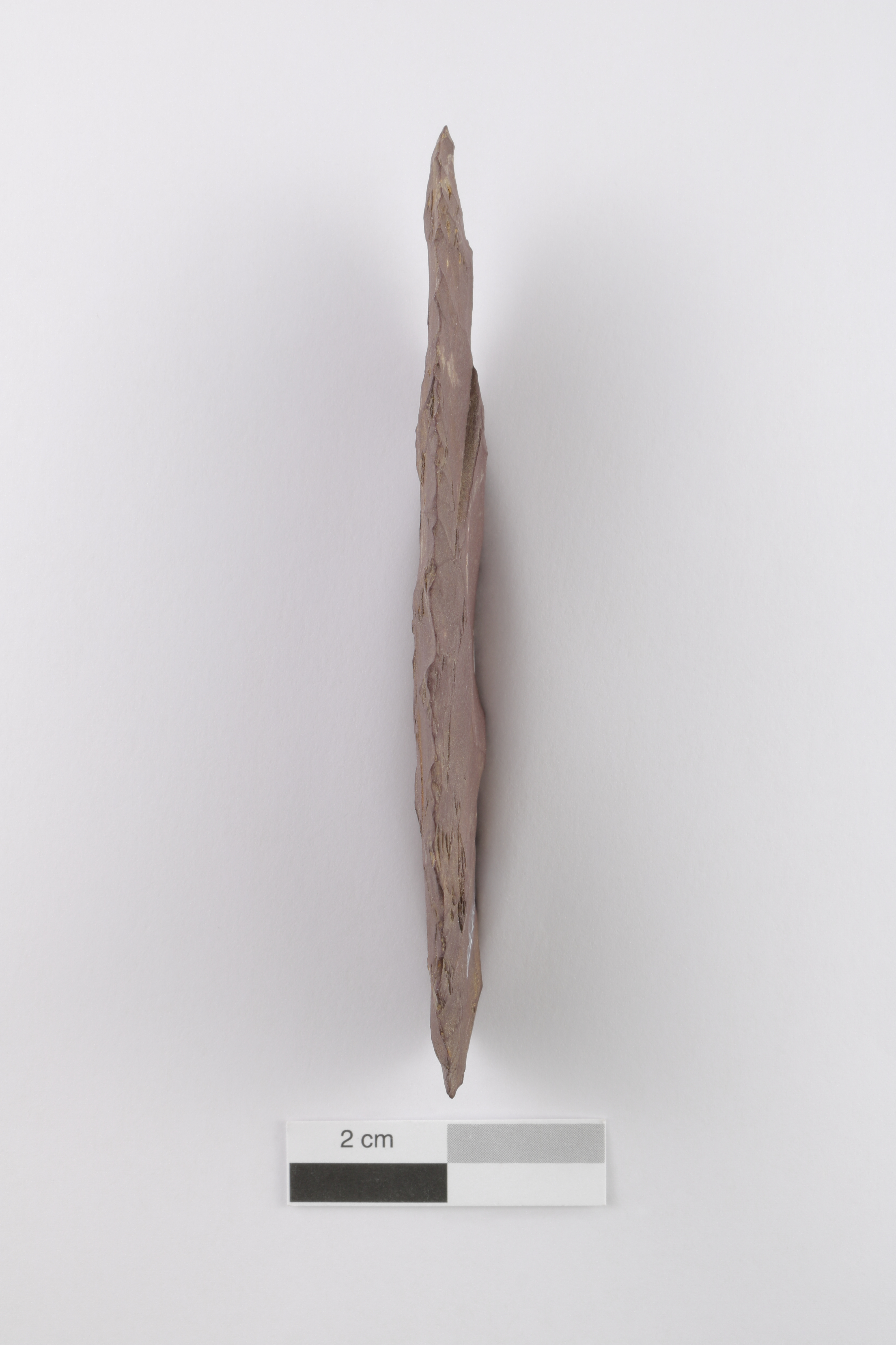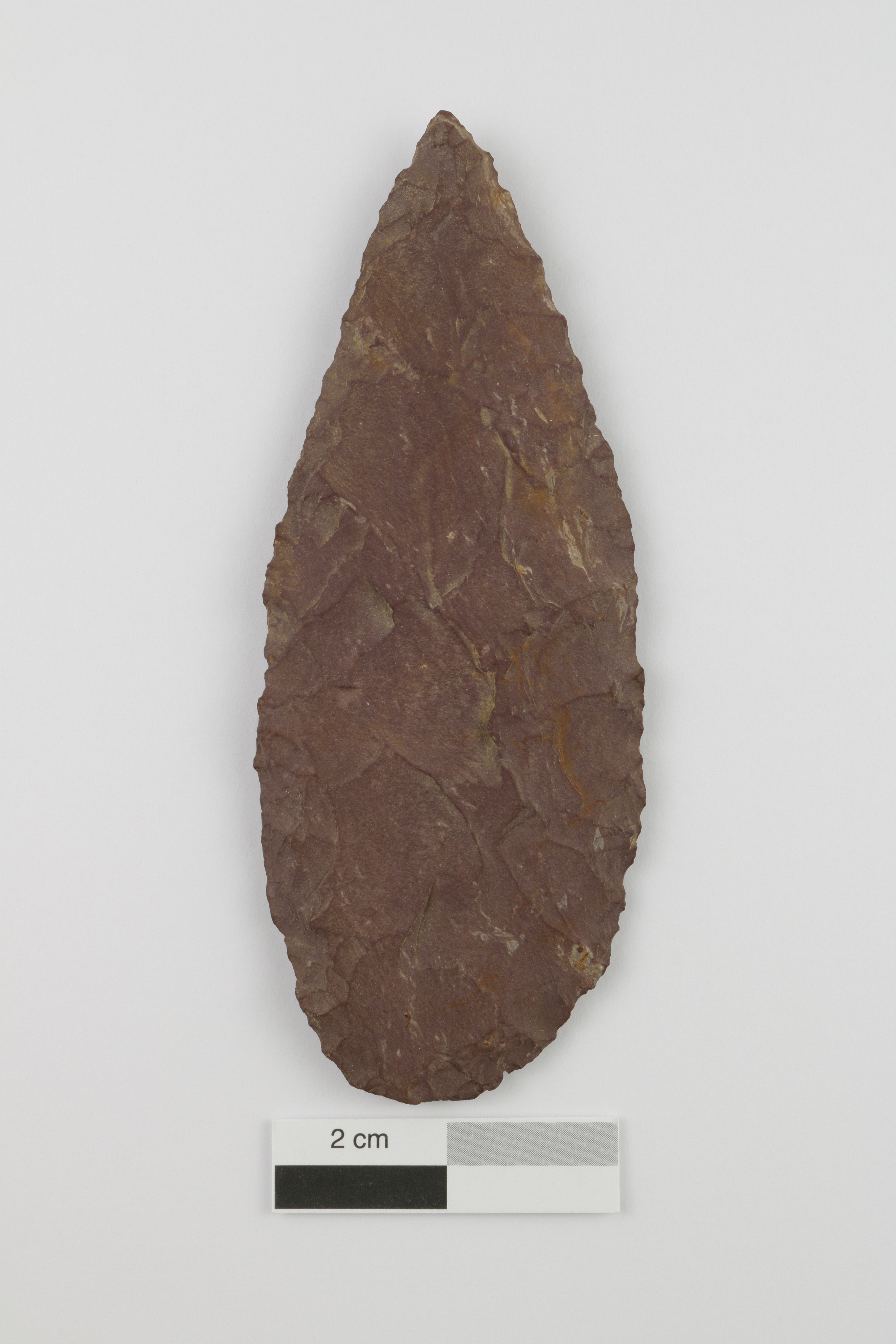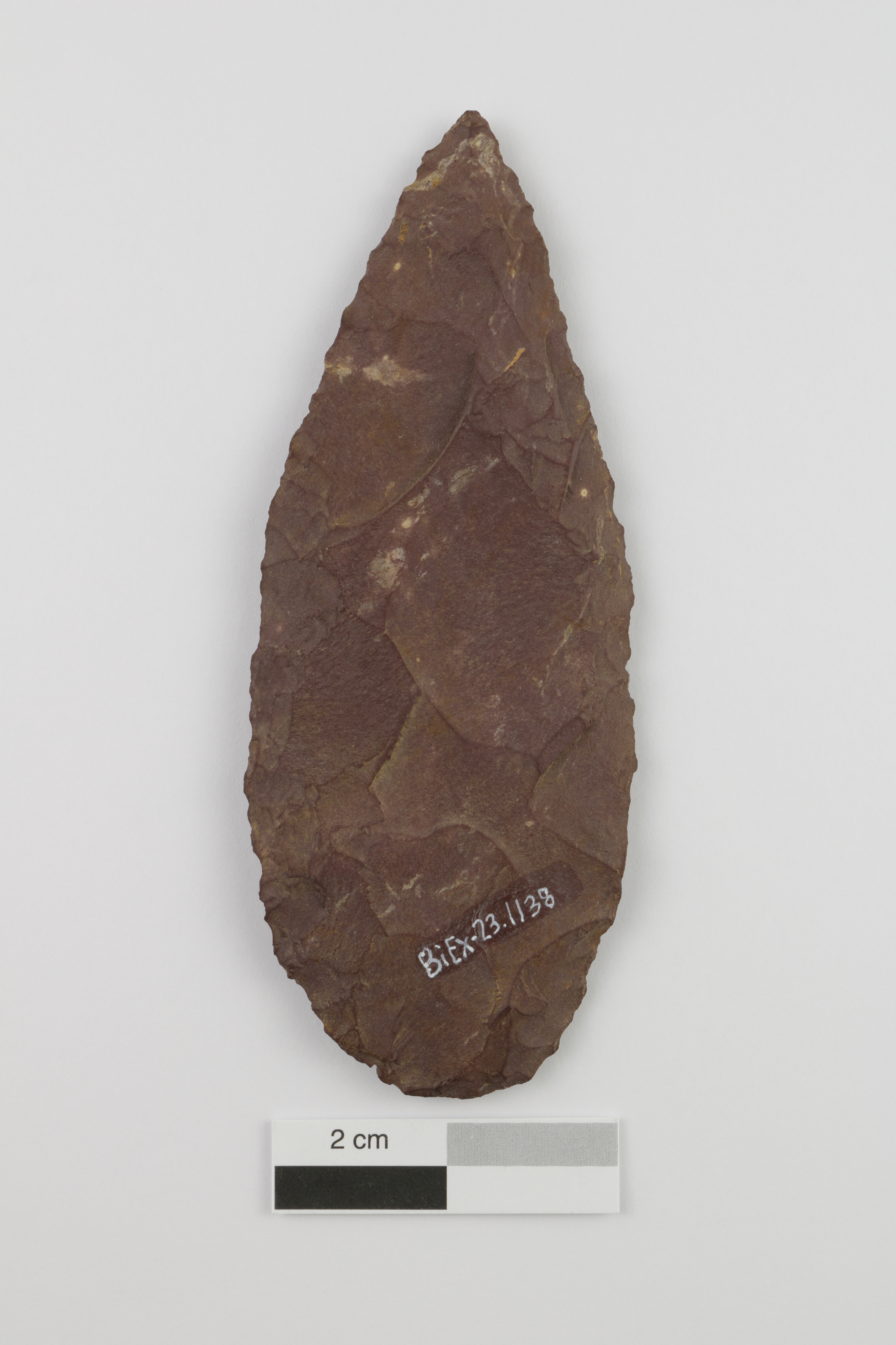 L'utilisation d'une pierre locale, le schiste ardoisier rouge, pour la fabrication du biface suggère que les occupants du site Kruger 2 (BiEx-23) étaient familiers avec la région au Paléoindien récent ou supérieur et en connaissaient bien les ressources.