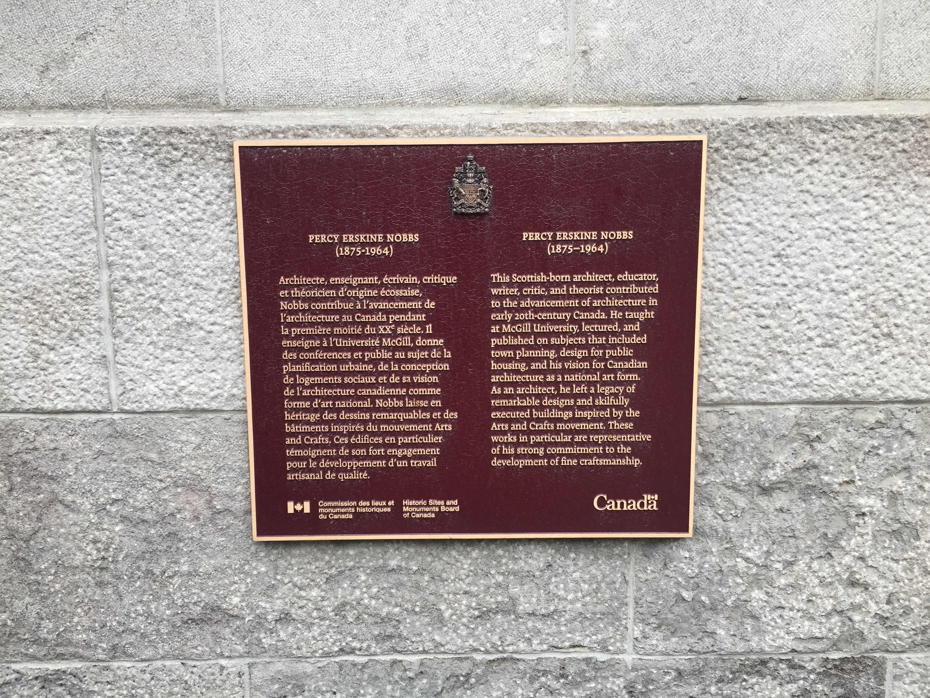 Plaque de Percy Erskine Nobbs (1875-1964)