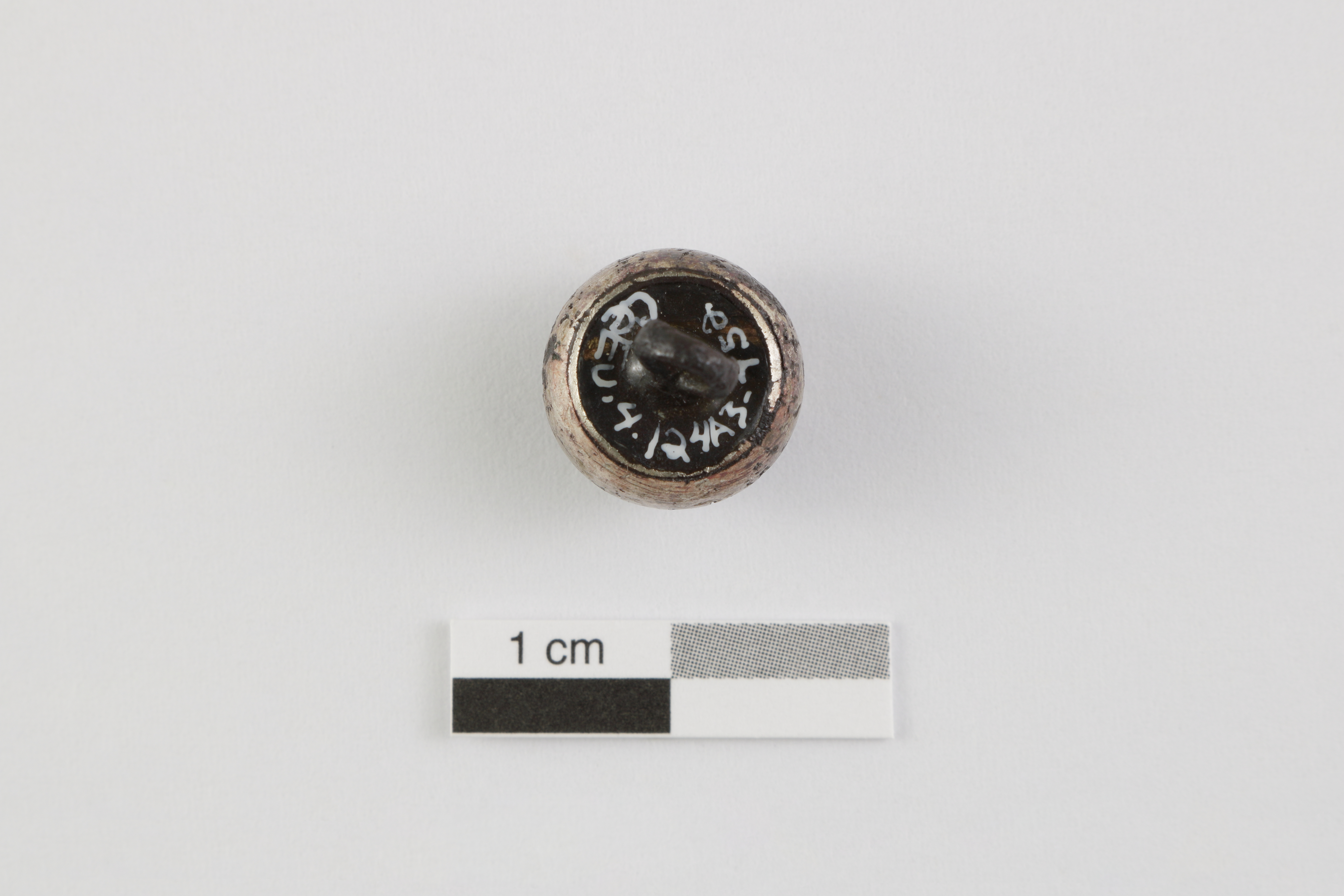 Le bouton est une attache utilisée pour fermer un vêtement. Le bouton est importé en Amérique du Nord entre 1541 et 1543, vraisemblablement avec le vêtement dont il fait partie. Puisqu'il est plaqué d'argent, le bouton appartient probablement à une personne de haut rang social.