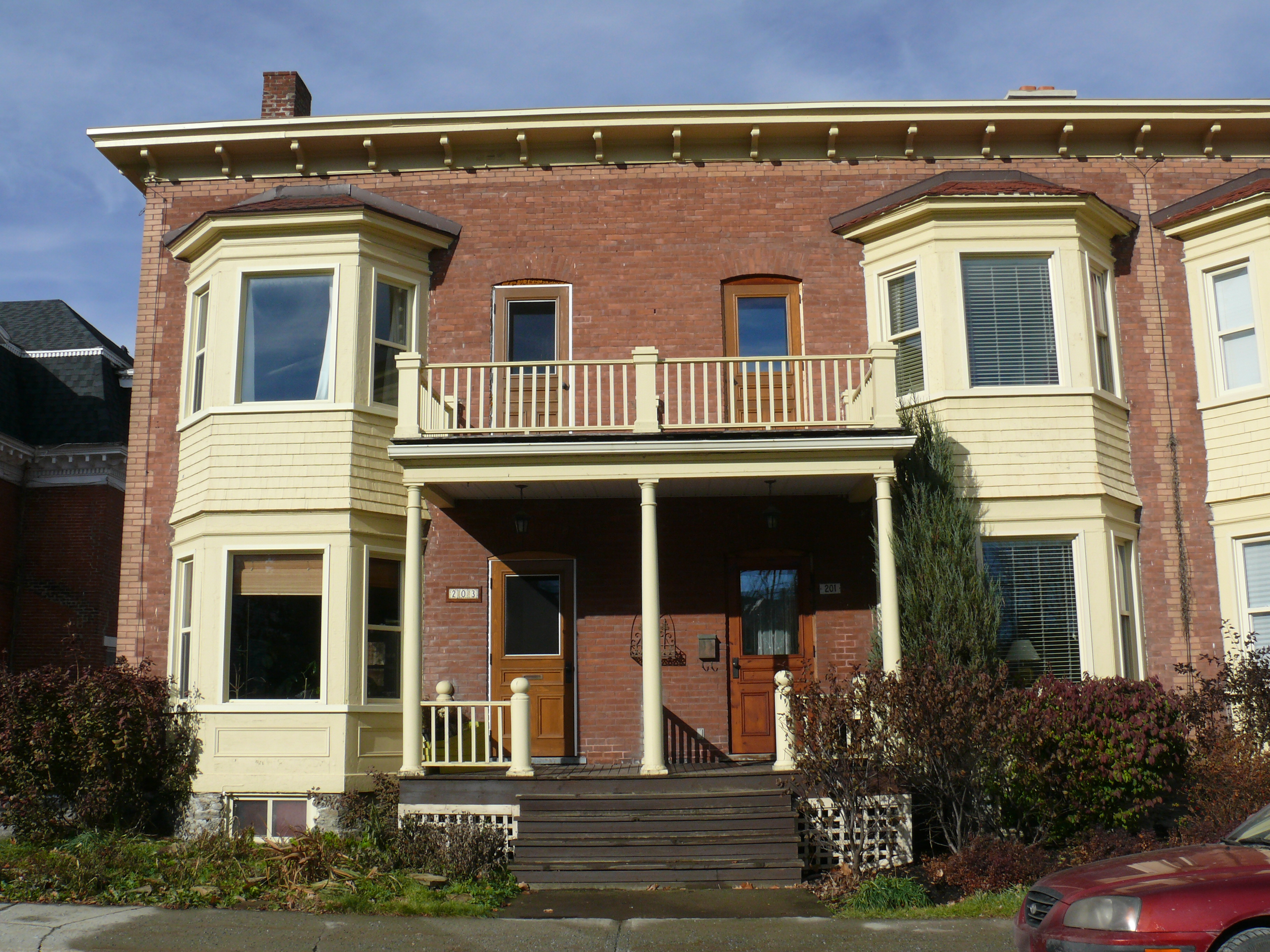 Cette maison, qui fait partie d'un ensemble appelé Court Street Terrace à l'origine, est construite en 1911-1912 par les marchands de grains et de farine en gros Fulller & Wiggett. En 1911, cette entreprise achète deux lots vacants sur la rue Court. Elle confie ensuite à l'entrepreneur Achille ou Louis Joncas la construction d'un ensemble de maisons en rangée, une forme d'habitat connue à l'époque sous le nom de Terrace Houses. À la fin des travaux, complétés au printemps 1912, la Court Street Terrace comprend quatre maisons de six pièces que l'entreprise offre en location. Le projet est cependant à peine complété que la firme Fulller & Wiggett se dissout, en septembre 1913. William H. Fuller devient l'unique propriétaire de l'immeuble en 1917. En 1921, il cède la propriété à ses quatre fils, qui se partagent les unités de l'ensemble. Le 201, rue Court revient à Ernest B. Fuller. Marié à Elisabeth Davitt en 1917, Ernest B. Fuller travaille dans la compagnie de son père, la Fuller Grain and Provision Company. Il meurt prématurément à l'âge de 51 ans d'une courte maladie dans sa maison de rue Court en 1932. Elisabeth Davitt loue la maison assez rapidement par la suite, logeant plutôt dans l'une des autres maisons que possèdent les membres de la famille Fuller sur la rue Court. Elle conserve toutefois la propriété jusqu'à son décès survenu en 1965.