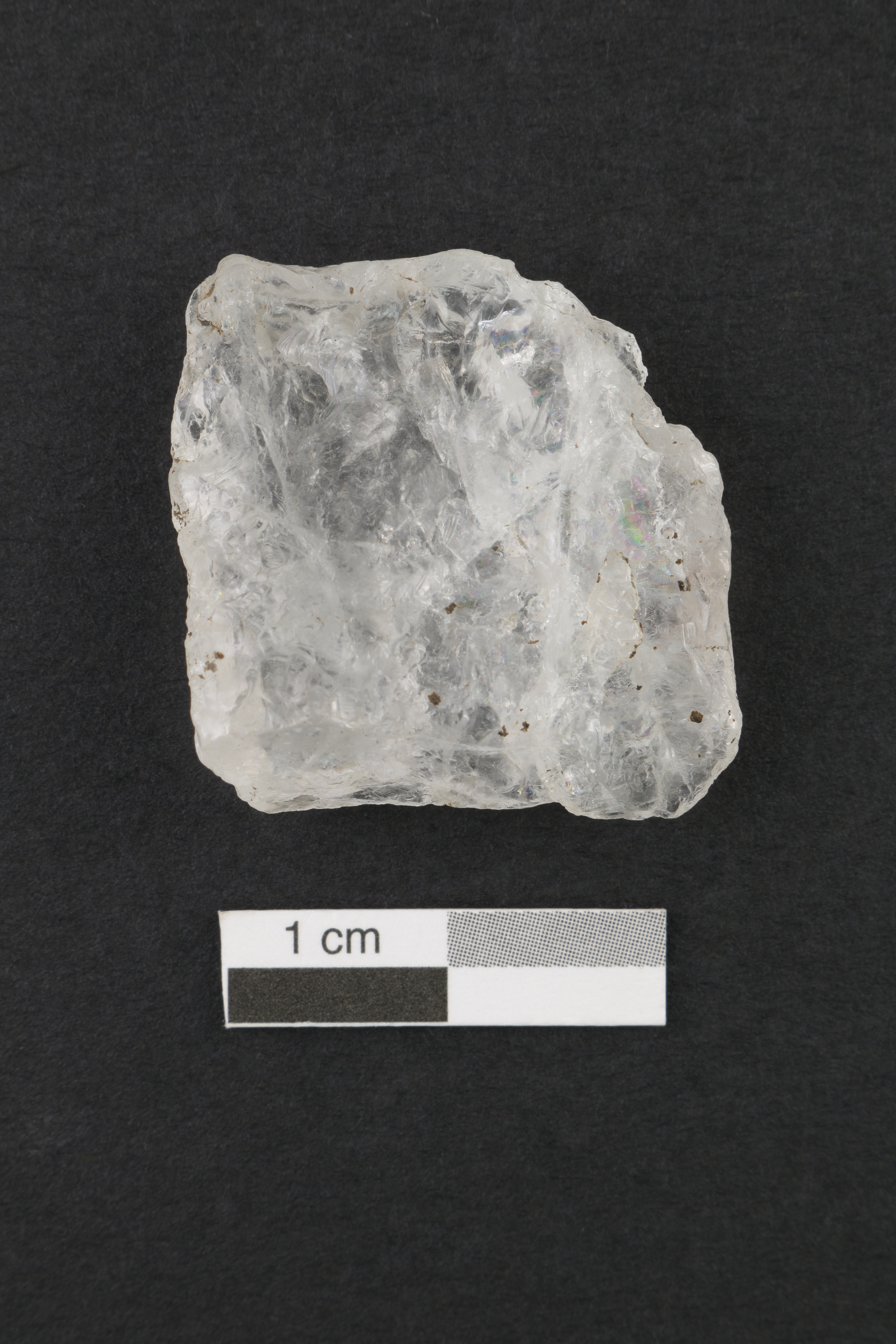 La pièce esquillée est un outil en pierre taillée généralement considéré comme étant utilisé pour fendre des matières organiques dures. De datation indéterminée, l'objet entier en quartz hyalin est entièrement couvert de négatifs d'enlèvements. La pièce mesure 2,87 cm de longueur, 1,89 cm de largeur et présente une épaisseur de 0,89 cm.