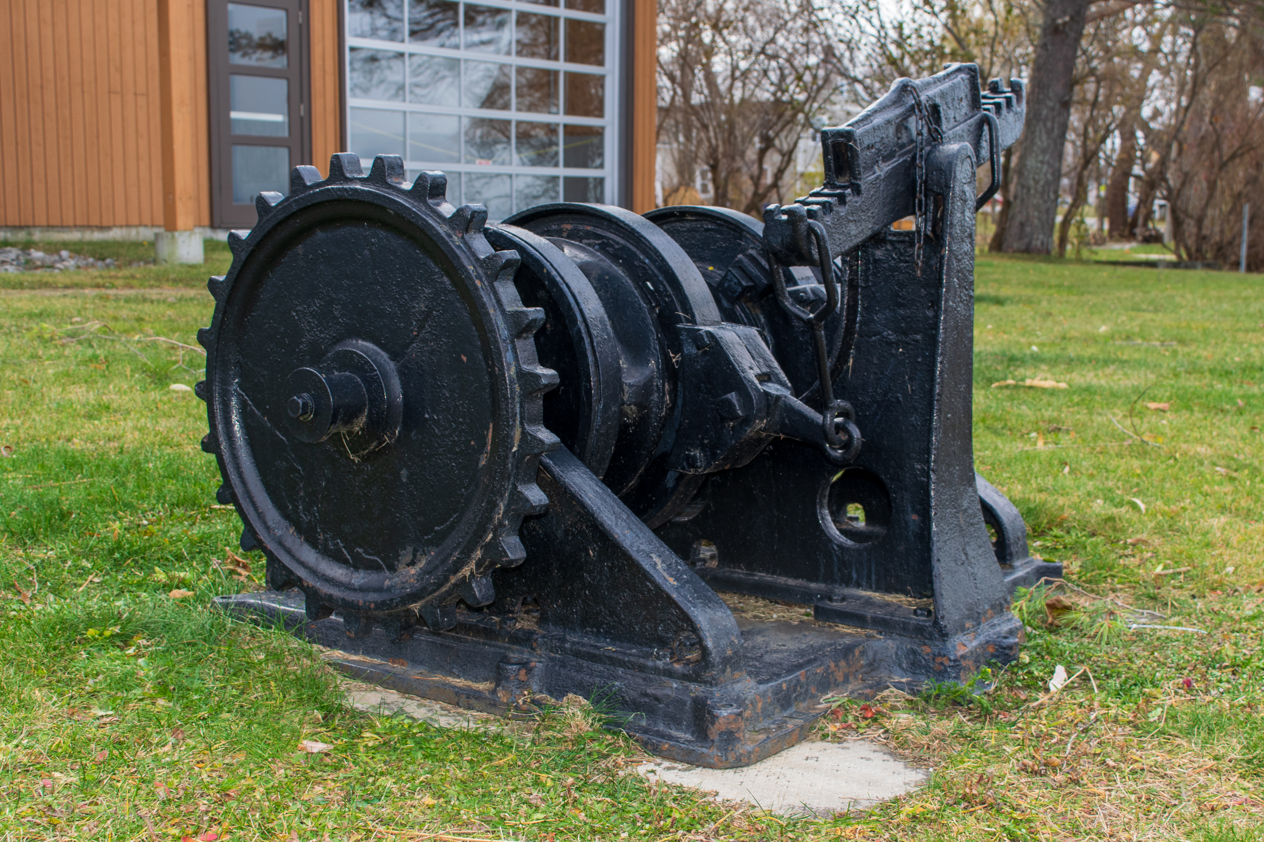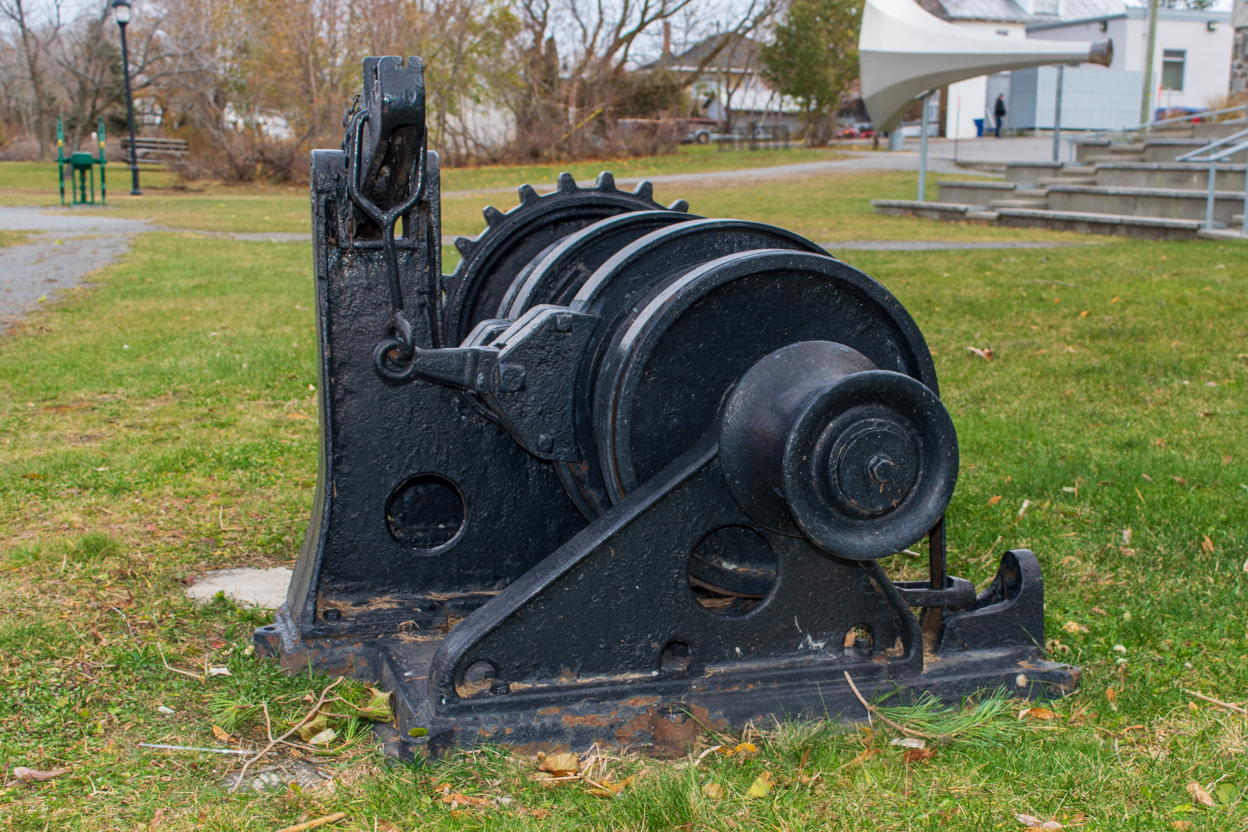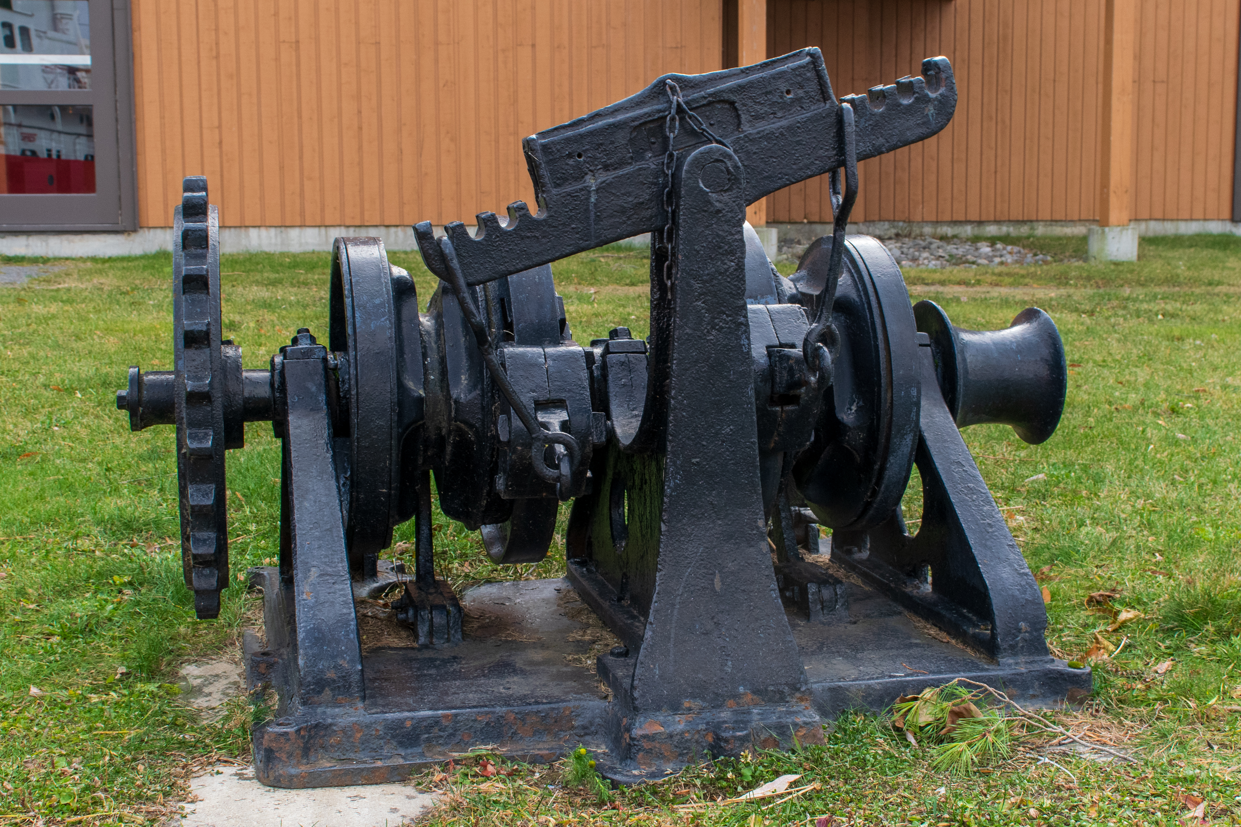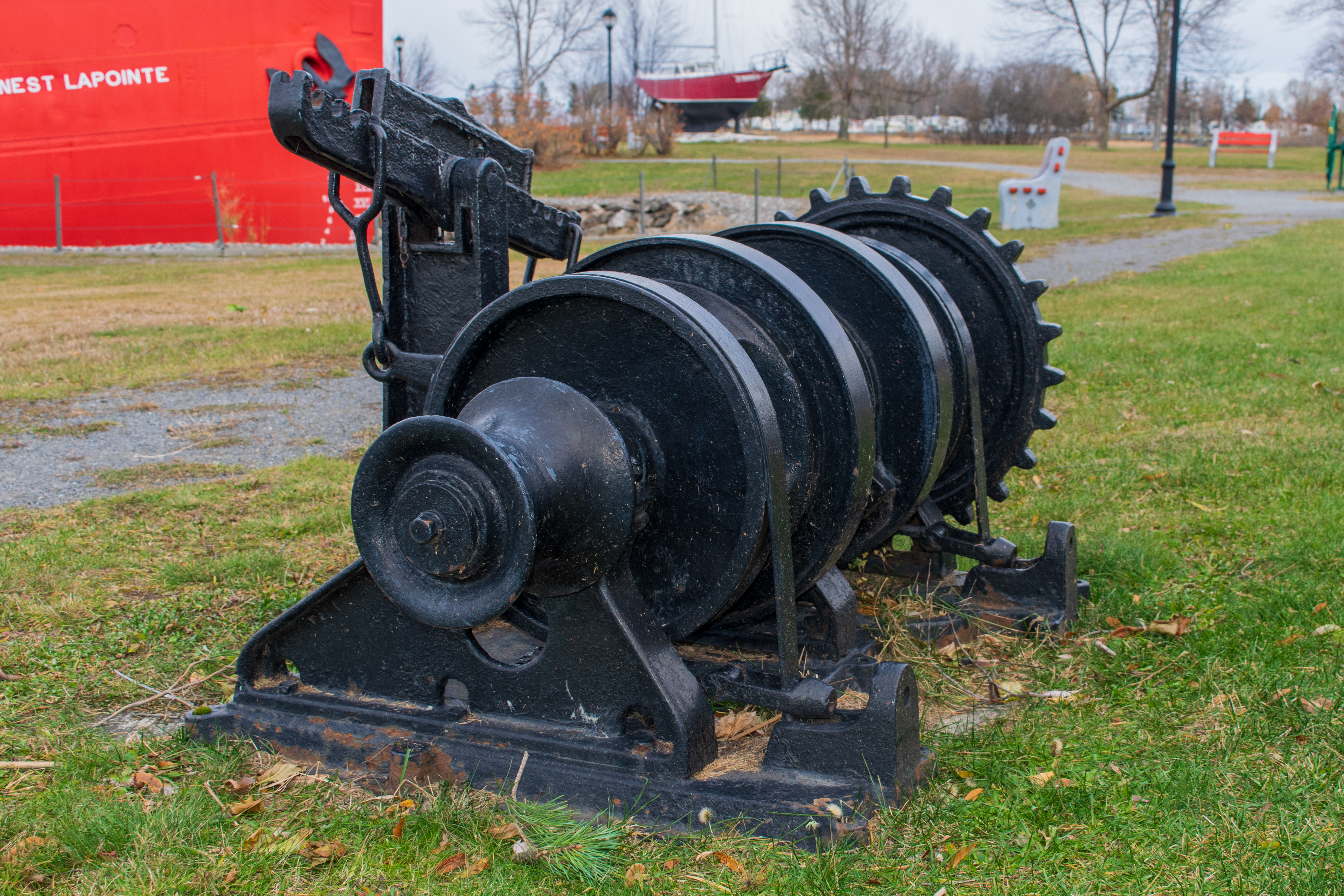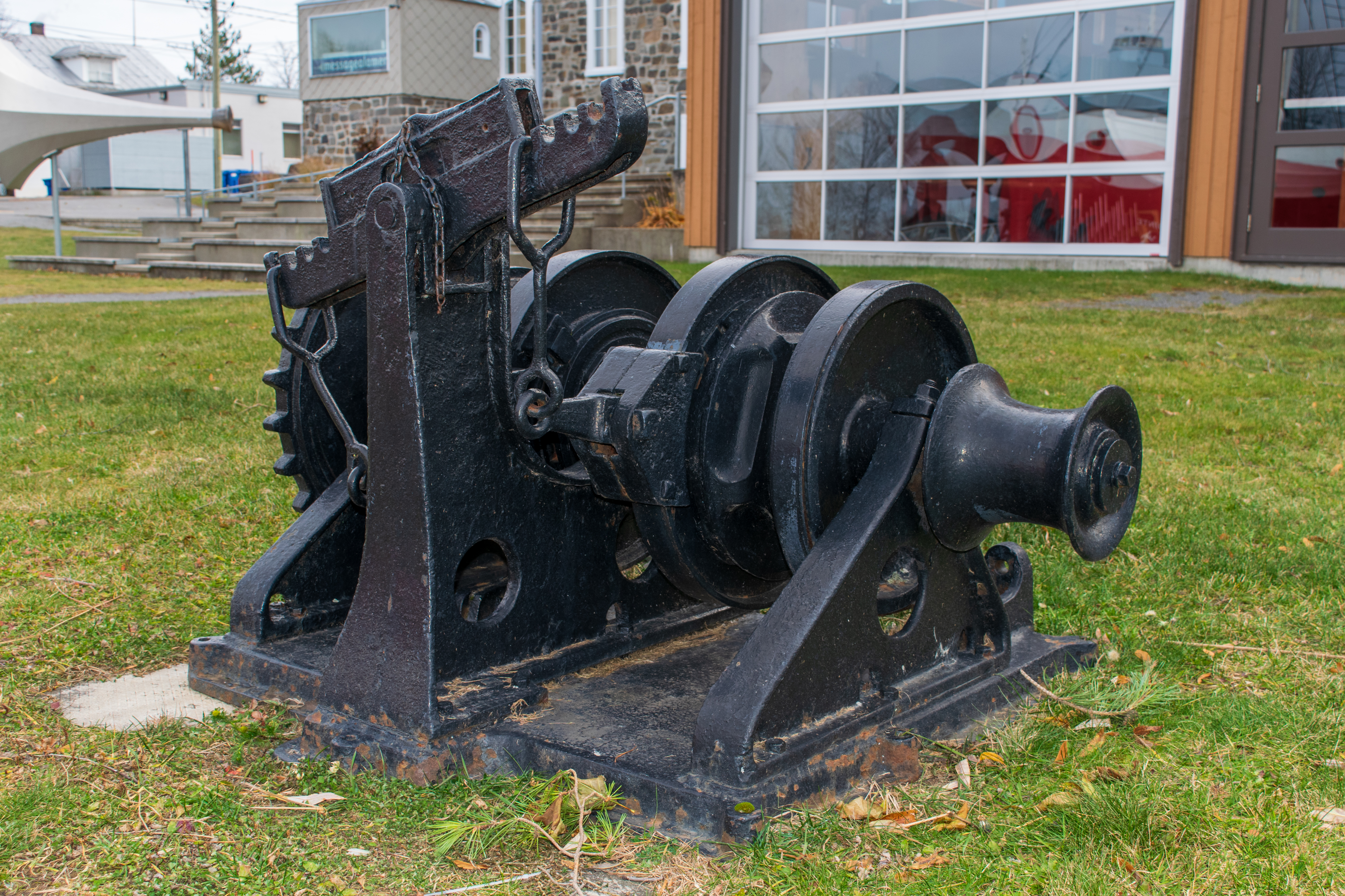 Le guindeau du caboteur Orléans ou Libertaire est un treuil fabriqué vers 1940. L'objet en fonte mesure 154,5 cm de longueur sur 107,5 cm de largeur. Il est composé horizontalement d'une poupée, cylindre évasé autour duquel s'enroule les amarres, de deux barbotins, constitués de deux couronnes à empreintes pour manipuler les chaînes d'ancre, et d'une roue dentée. Un arbre vertical en « T » est disposé au centre de ce mécanisme. Le guindeau est actionné manuellement par un entrainement à balancier au centre de l'axe horizontal.