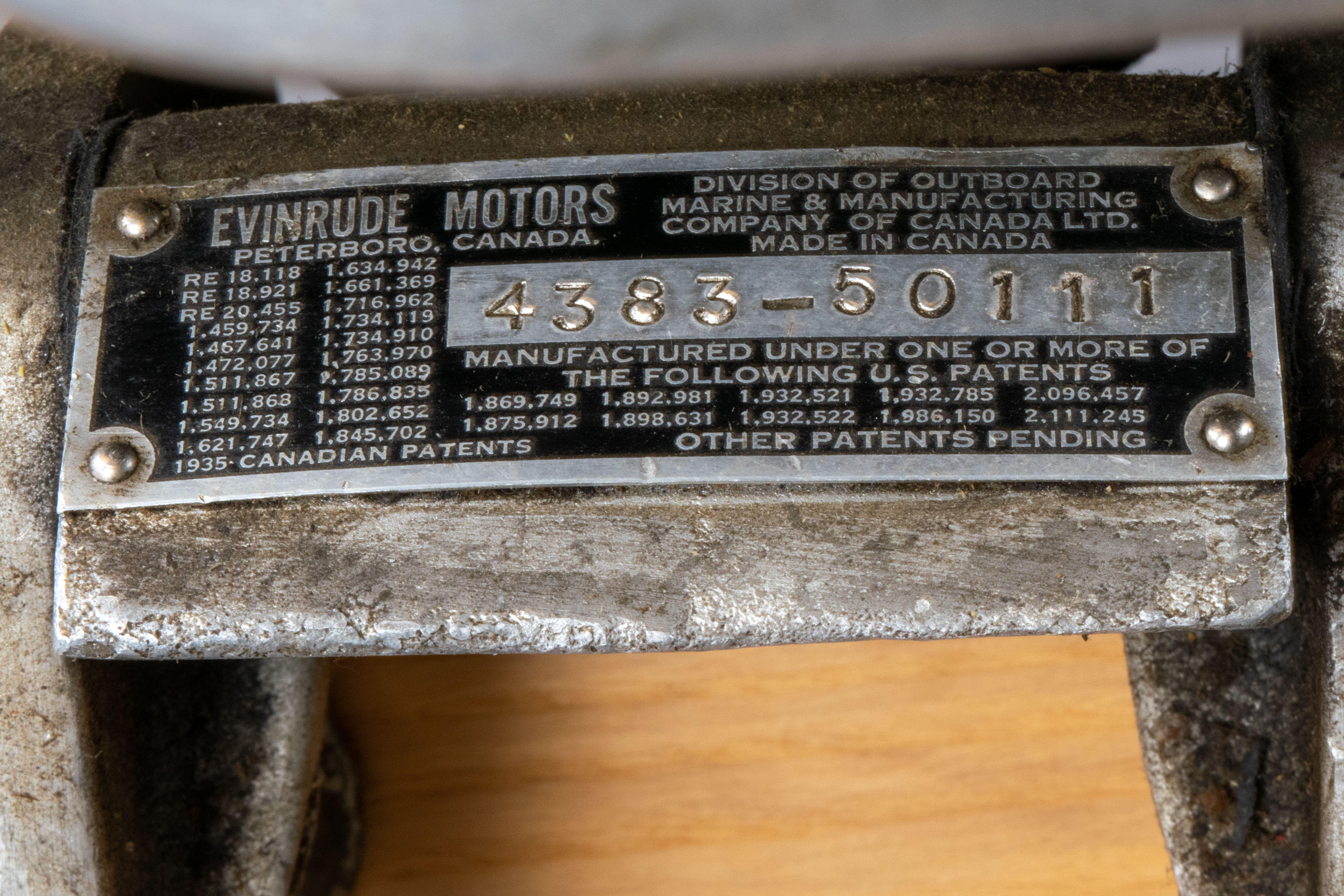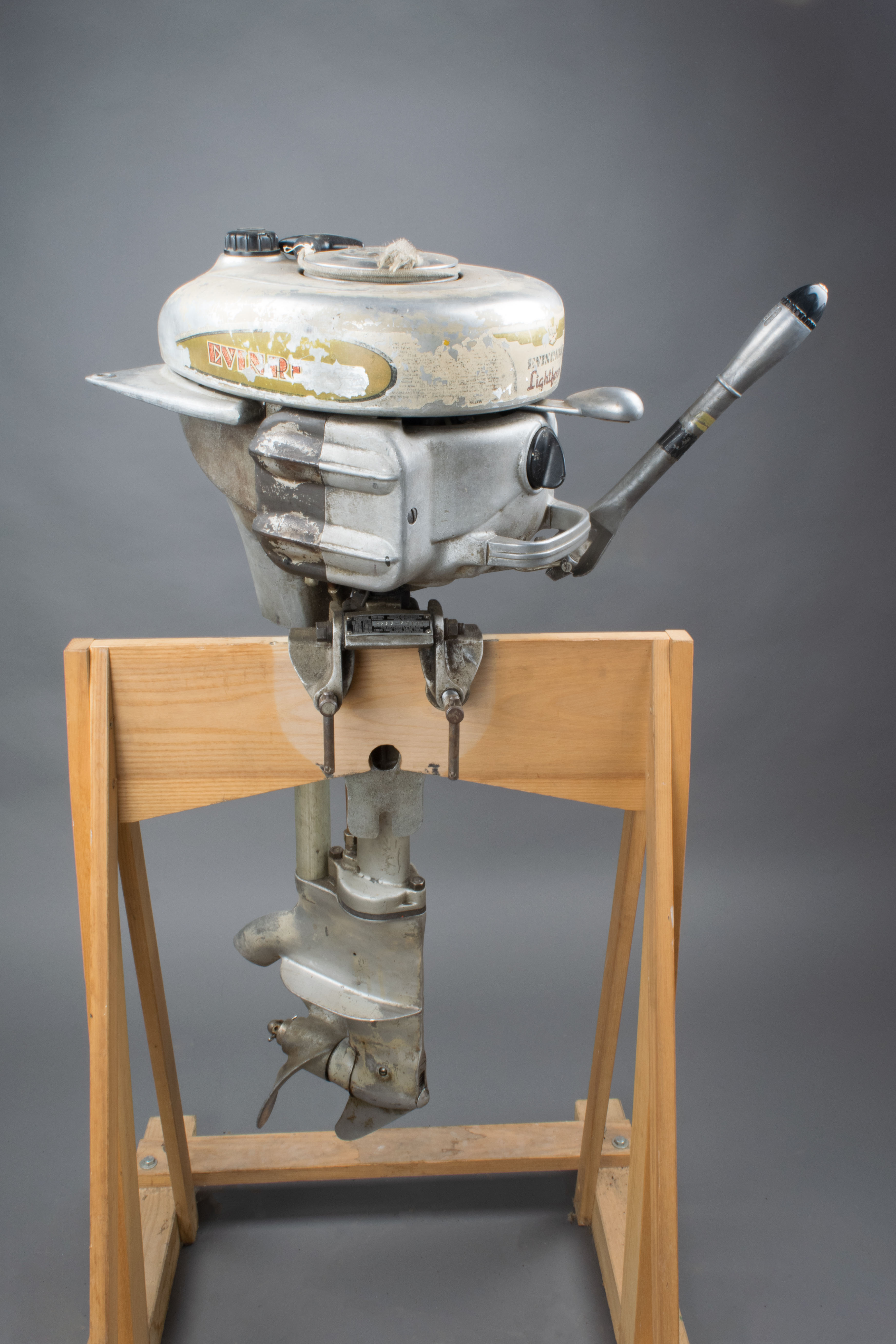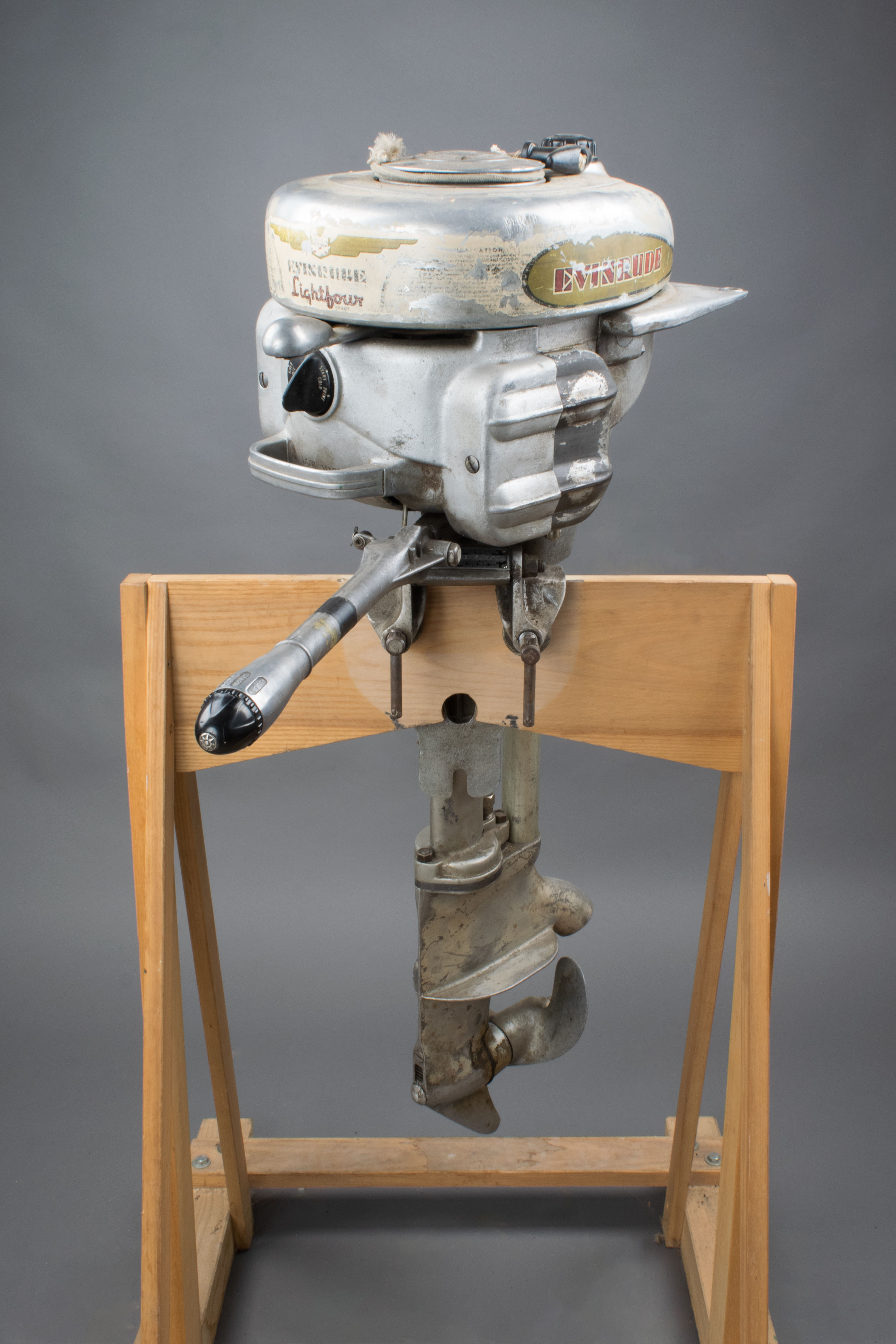 Ce moteur hors-bord Evinrude Lightfour est fabriqué vers 1945 par la compagnie Evinrude Motors, située à Milwaukee au Wisconsin. Cette marque est créée en 1908 par Ole Evinrude, l'inventeur du premier moteur hors-bord commercial. Résultant des productions utilitaires et résistantes de la Seconde Guerre mondiale, le moteur hors-bord Evinrude Lightfour rencontre un franc succès.