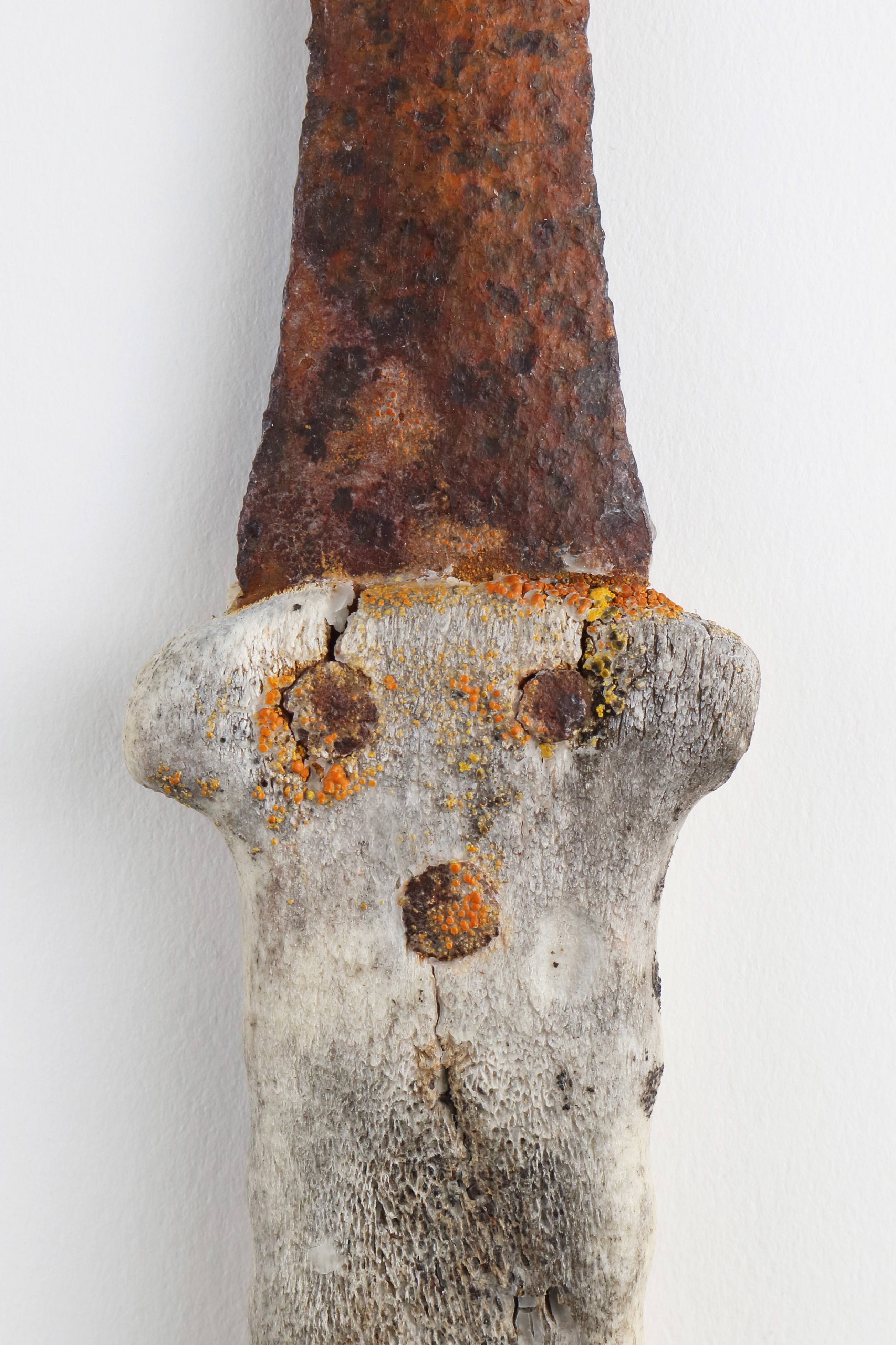 Une des faces du couteau présente des traces d'exposition aux éléments.