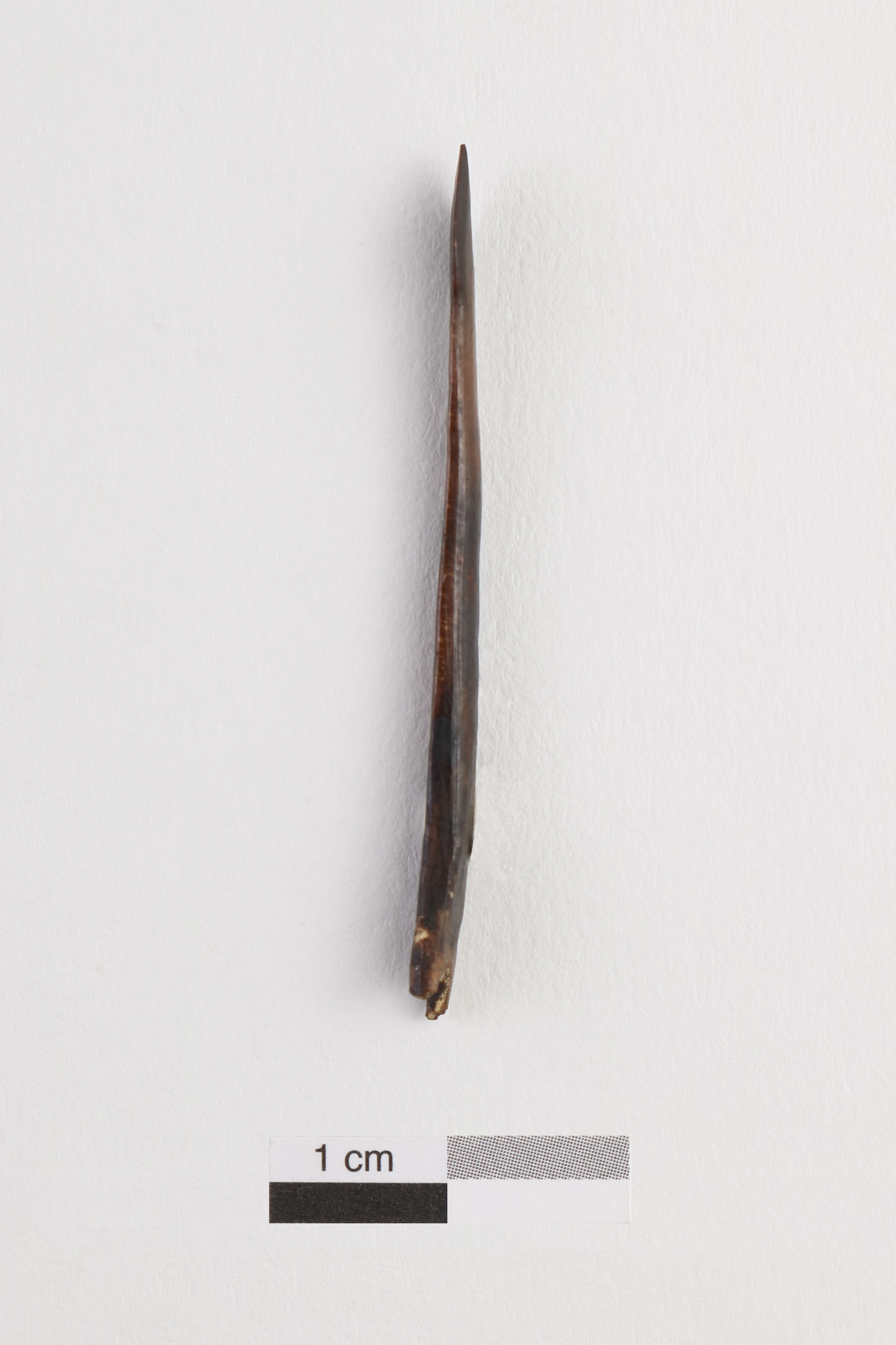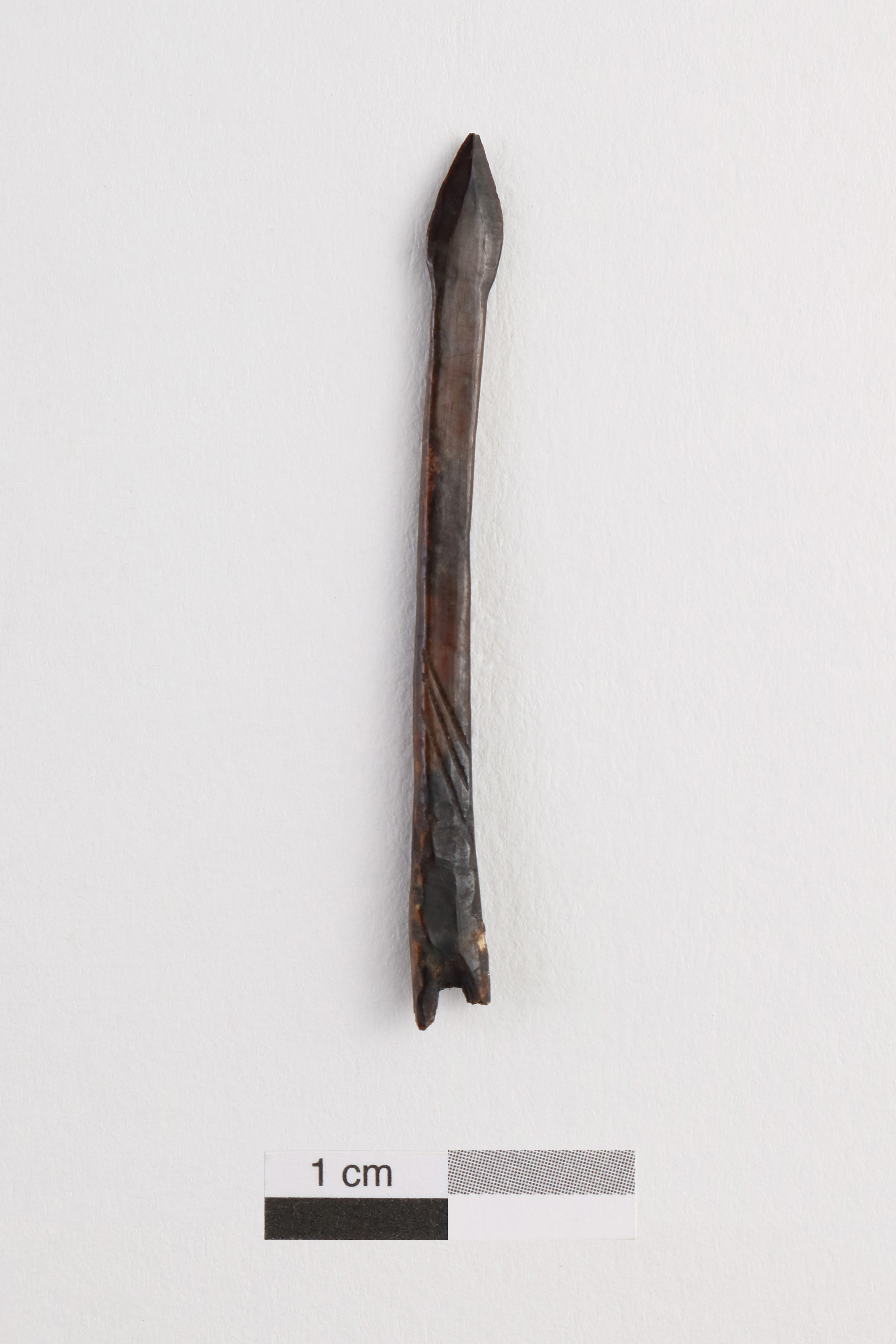 La flèche miniature est fabriquée en andouiller de caribou au cours de la période thuléenne (800 à 250 ans avant aujourd'hui). De forme allongée, la flèche est dotée d'une extrémité distale en pointe triangulaire. Une encoche est pratiquée à l'extrémité proximale.