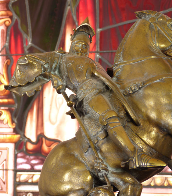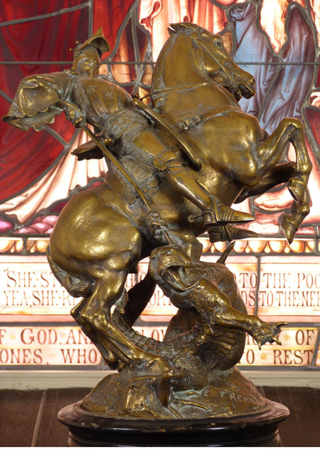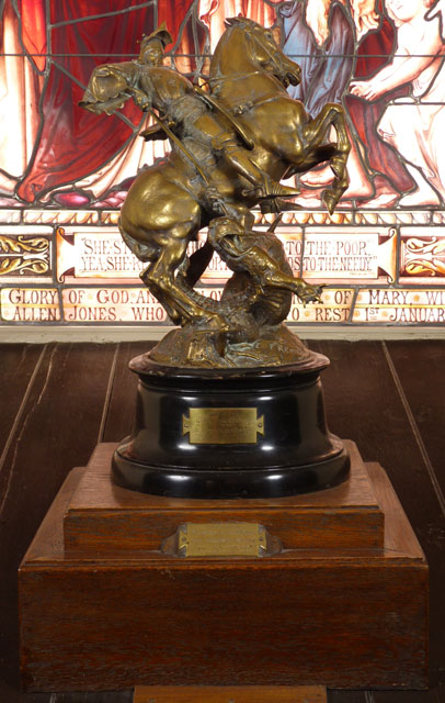 Socle, c., plaque : PRESENTED TO / William M. Massey / BY HIS FELLOW MEMBERS OF THE / St. George's Society of New York / IN TOKEN OF THEIR LOVE AND ESTEEM / 1899; socle, c., plaque : [Présence]