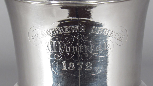 Sur la coupe : ST. ANDREW'S CHURCH / Montreal. / 1872.; sous le pied : OP6-016750; sous le pied : H E & Co / EP