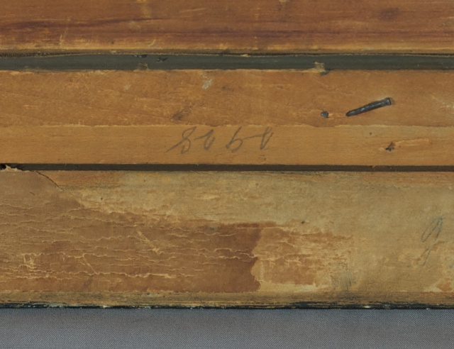 Derrière, c. : [Présence]; derrière, sur le châssis, b. : 2928; derrière, sur le châssis, c.d. : 2928; derrière, sur le châssis, c.h. : [...]; derrière, sur cadre, b.d. : 2928