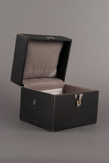 À l'intérieur du couvercle, b.d., étiquette : GILLES BEAUGRAND INC / Orfèvres / 846 ave De l'épée - Montréal 8 - CANADA