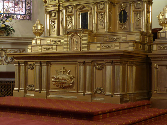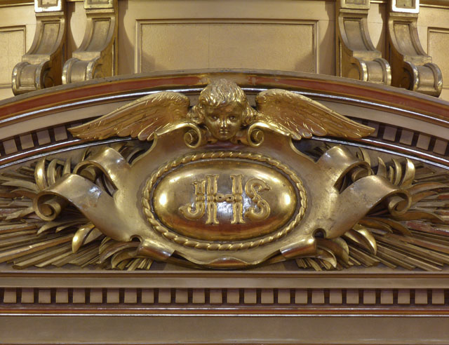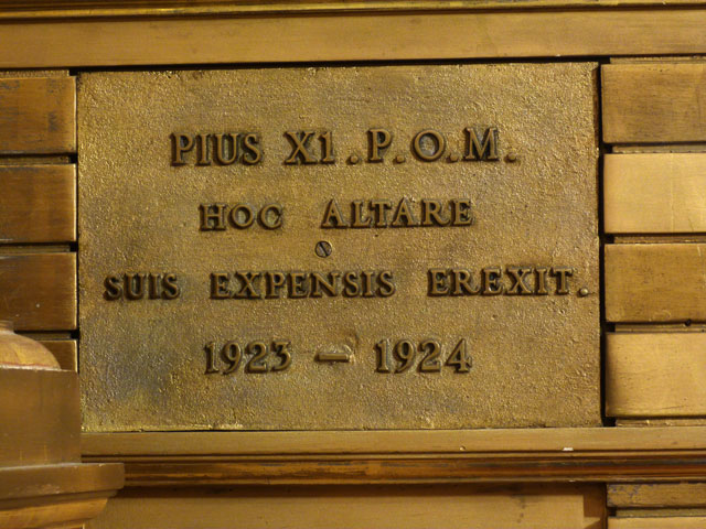 H.c. : JHS; sur le tabernacle, g. : PIUS X1 .P.O.M. / HOC ALTARE / SUIS EXPENSIS EREXIT. / 1923 - 1924