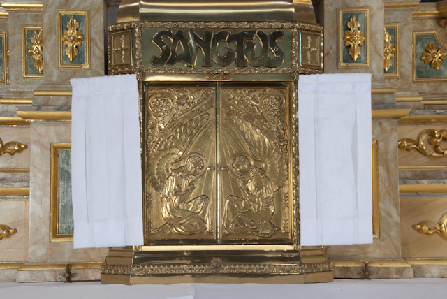Au-dessus des portes du tabernacle : SANCTUS