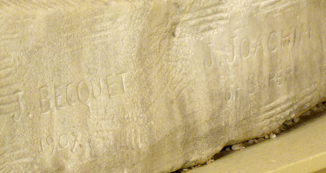 - Sur la base, côté droit : J. BECQUET J. JOACHIM / 1907 [...]T S[...]PÉR[...]
