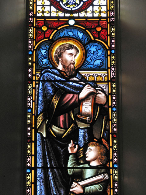 Ce vitrail, représentant saint Matthieu, a été installé dans le choeur de l’église en 1887. Il est dédié à la mémoire du jubilé d’or de la reine Victoria (1819-1901) qui fêta cette année-là le cinquantième anniversaire de son accession au trône du Royaume-Uni.