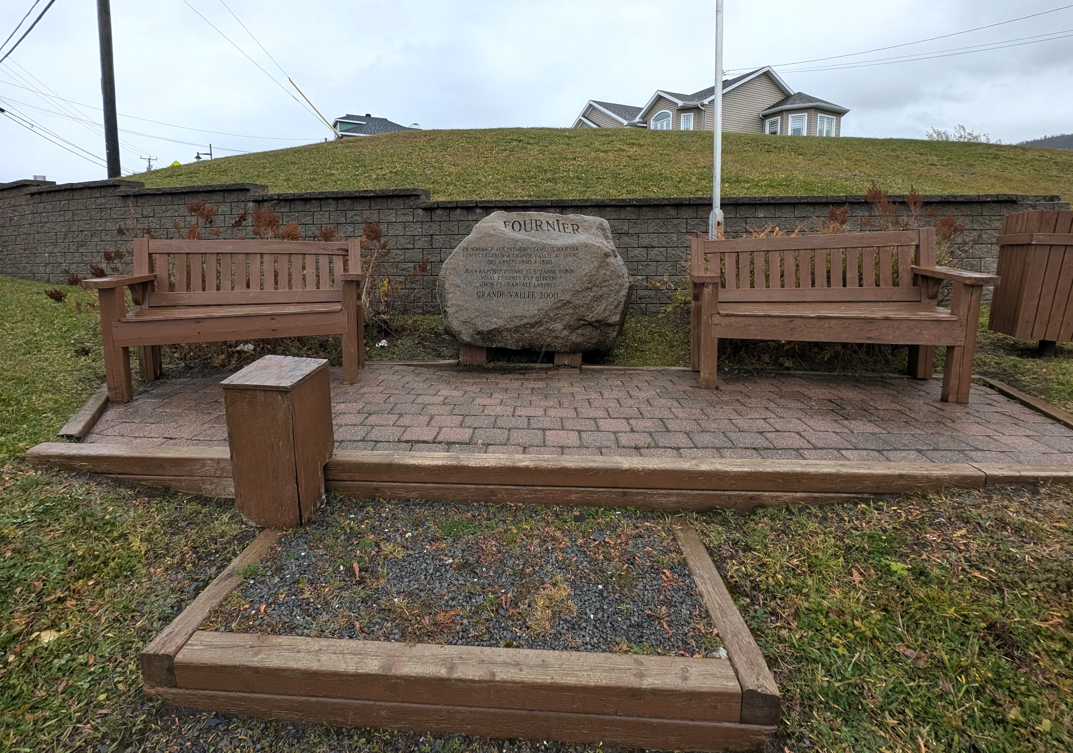 Le monument composé d'une pierre de granit a été fourni et gravé à même sa surface par la municipalité de Grande-Vallée. Il est situé à l'intersection de la route 132 et de la rue de la Fabrique. Le monument rend hommage aux premières familles Fournier qui se sont installées à Grande-Vallée. Il a été dévoilé à Grande-Vallée le 12 août 2000 à l'occasion du rassemblement annuel des familles Fournier.