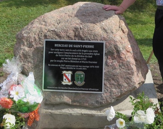 - Plaque commémorative Berceau de Saint-Pierre-de-la-Rivière-du-Sud rendant hommage aux ancêtres Pierre Blanchet et Marie Fournier.