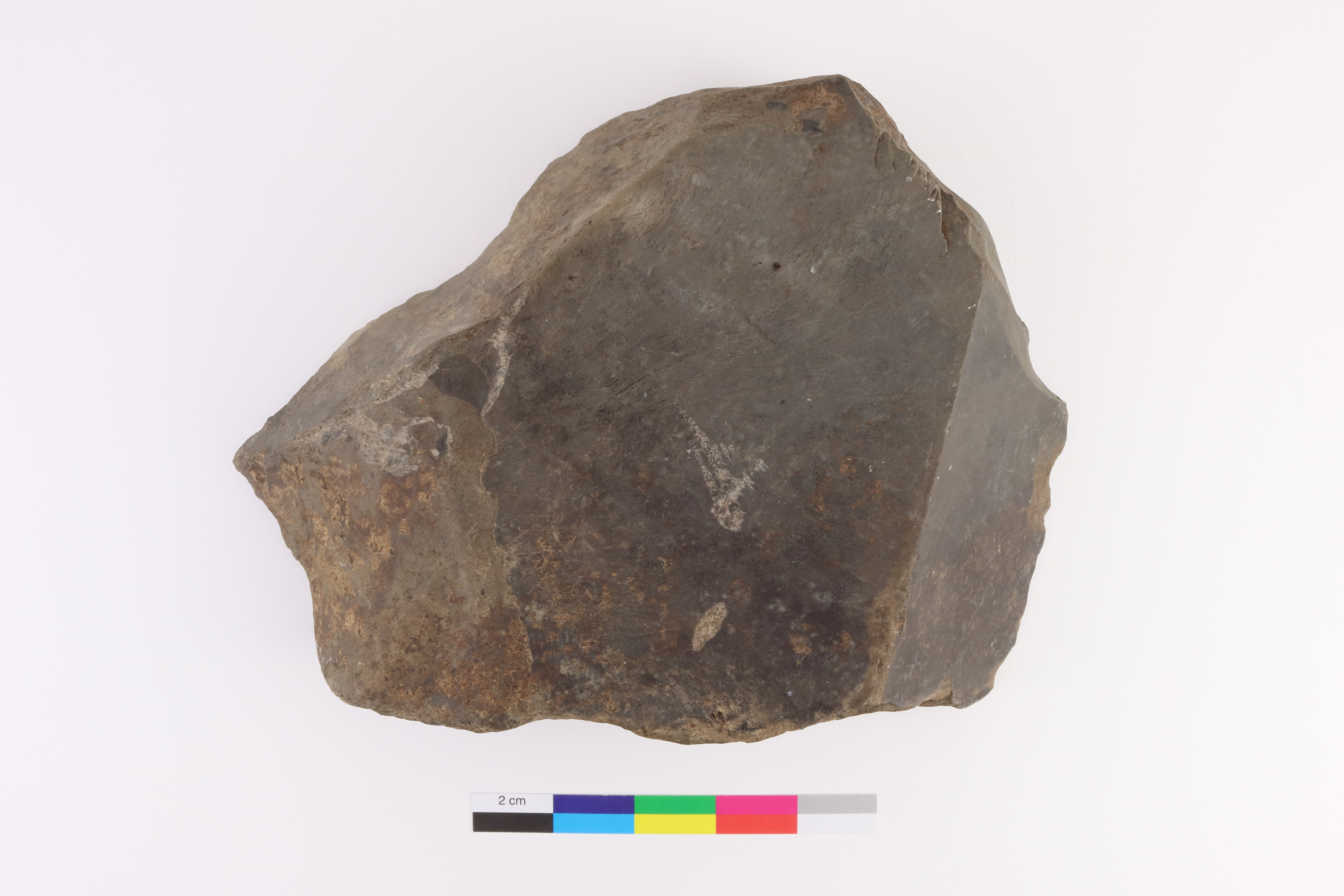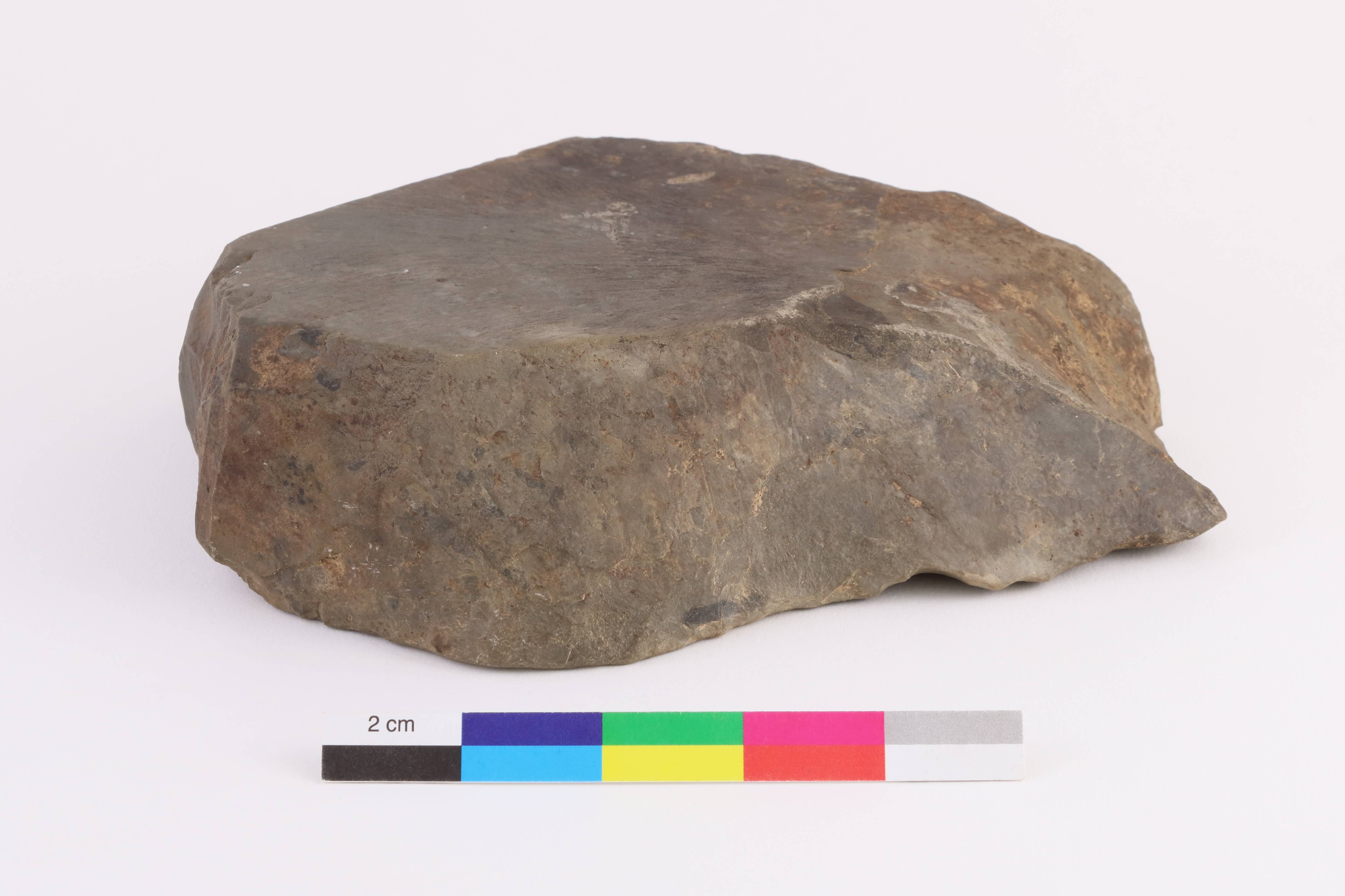 Le bloc de chert a été mis au jour en 1998 en surface d'un chemin forestier longeant un affleurement de chert appalachien de type La Martre dans la municipalité du même nom, en Haute-Gaspésie. Il a possiblement été extrait de l'affleurement par des tailleurs en quête de matière première, mais n'a visiblement pas été sélectionné pour être transformé. Retrouvé en association avec des milliers de produits de débitage ainsi que des ébauches bifaciales, ce bloc de matière première témoigne de l'étape d'acquisition de la matière première sur le site de la carrière du Suroît en vue de fabriquer des outils en pierre taillée.