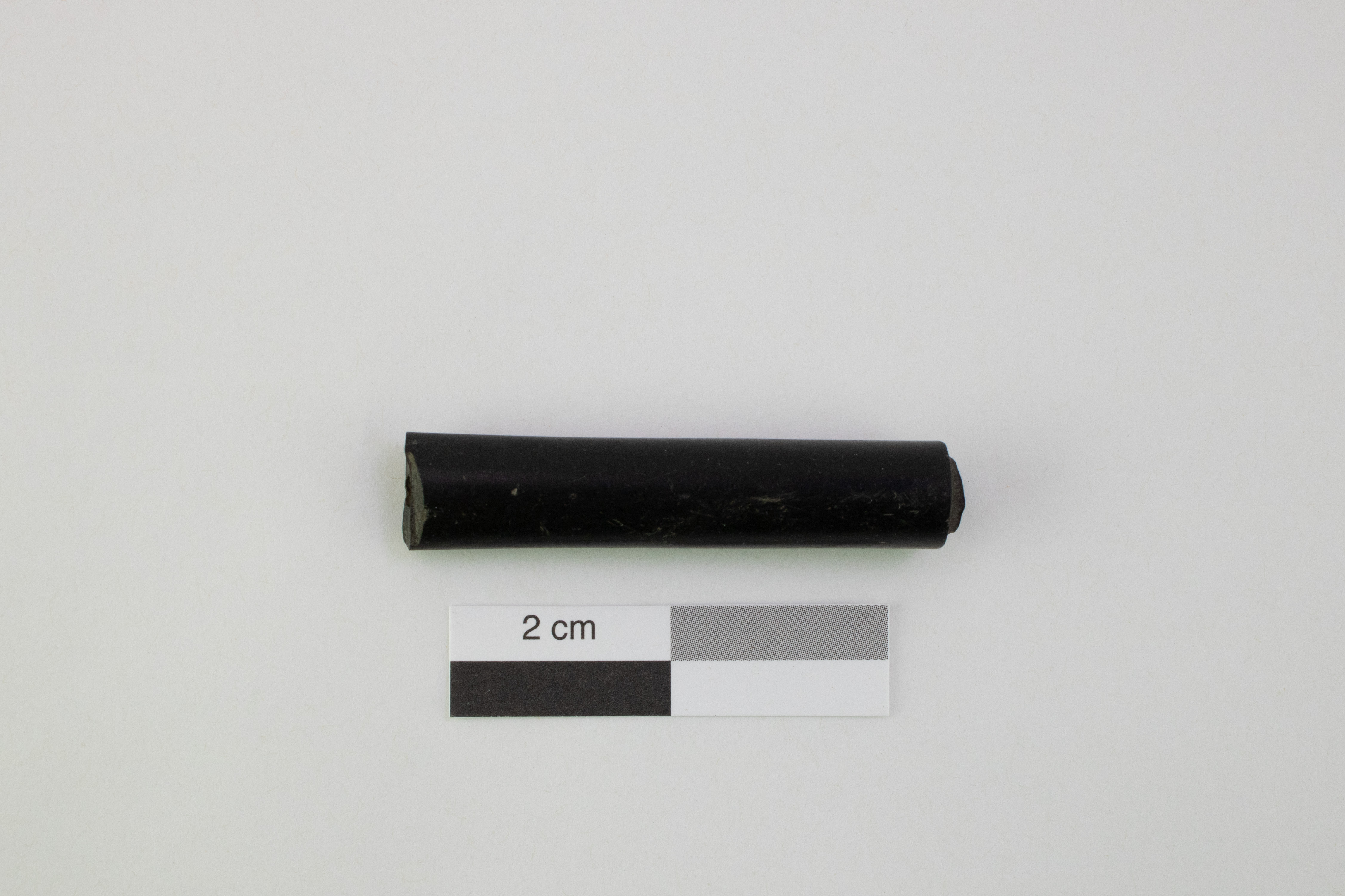 L'embout de pipe est un objet lié à la consommation de narcotiques datant d'entre le deuxième tiers et la fin du XIXe siècle. Complet, l'embout en ébonite comprend un tuyau lisse et droit ainsi qu'un floc serré, qui est cassé, assurant la jonction entre l'embout et le fourneau. L'objet a une longueur résiduelle de 4,9 cm et un diamètre maximal de 1 cm.