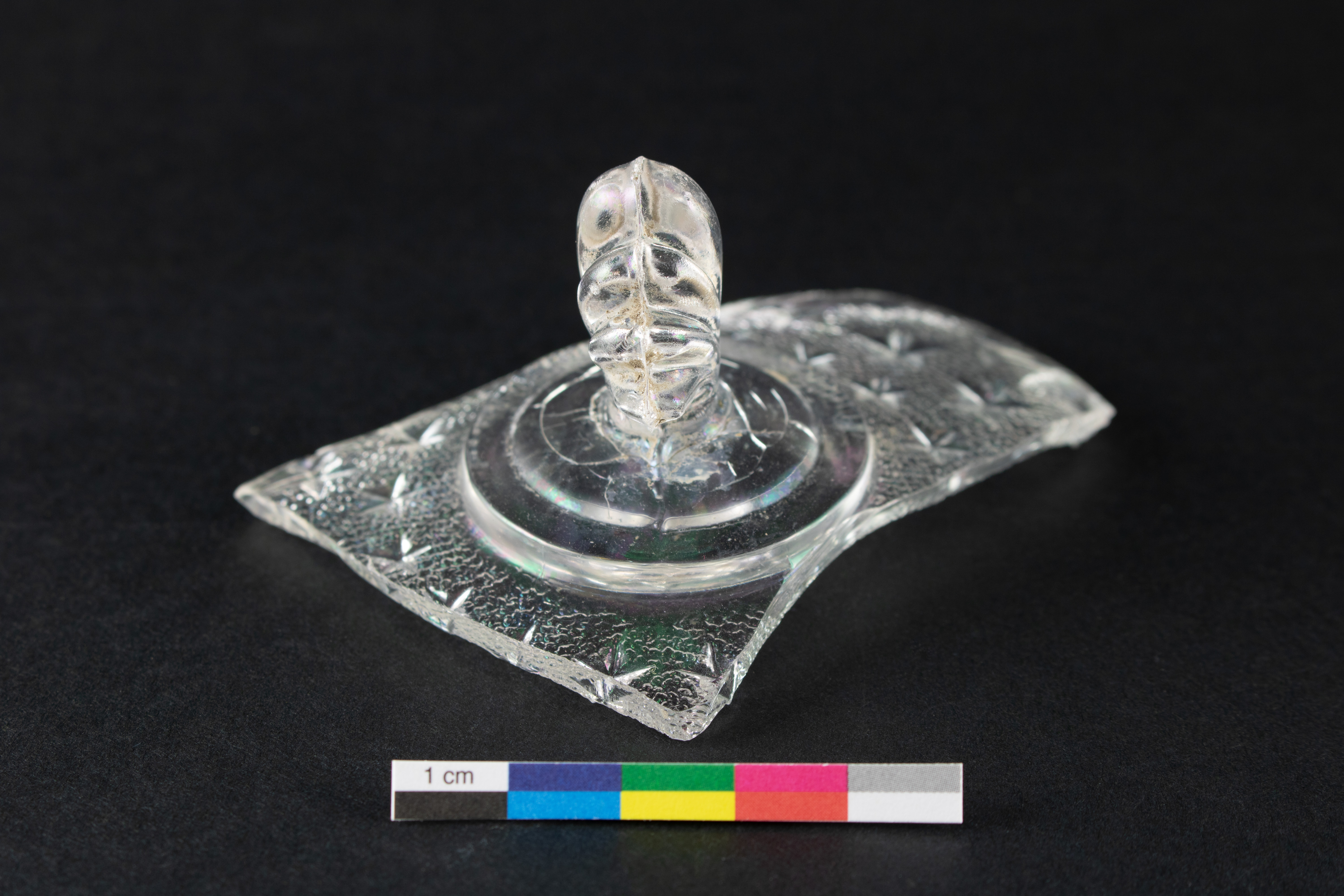 Le couvercle de beurrier a été sélectionné pour la collection archéologique de référence du Québec, car il témoigne de la production d'articles en verre pressé au cours de la seconde moitié du XIXe siècle. Il représente aussi une catégorie d'articles de table qui est peu représentée dans les collections archéologiques québécoises.
