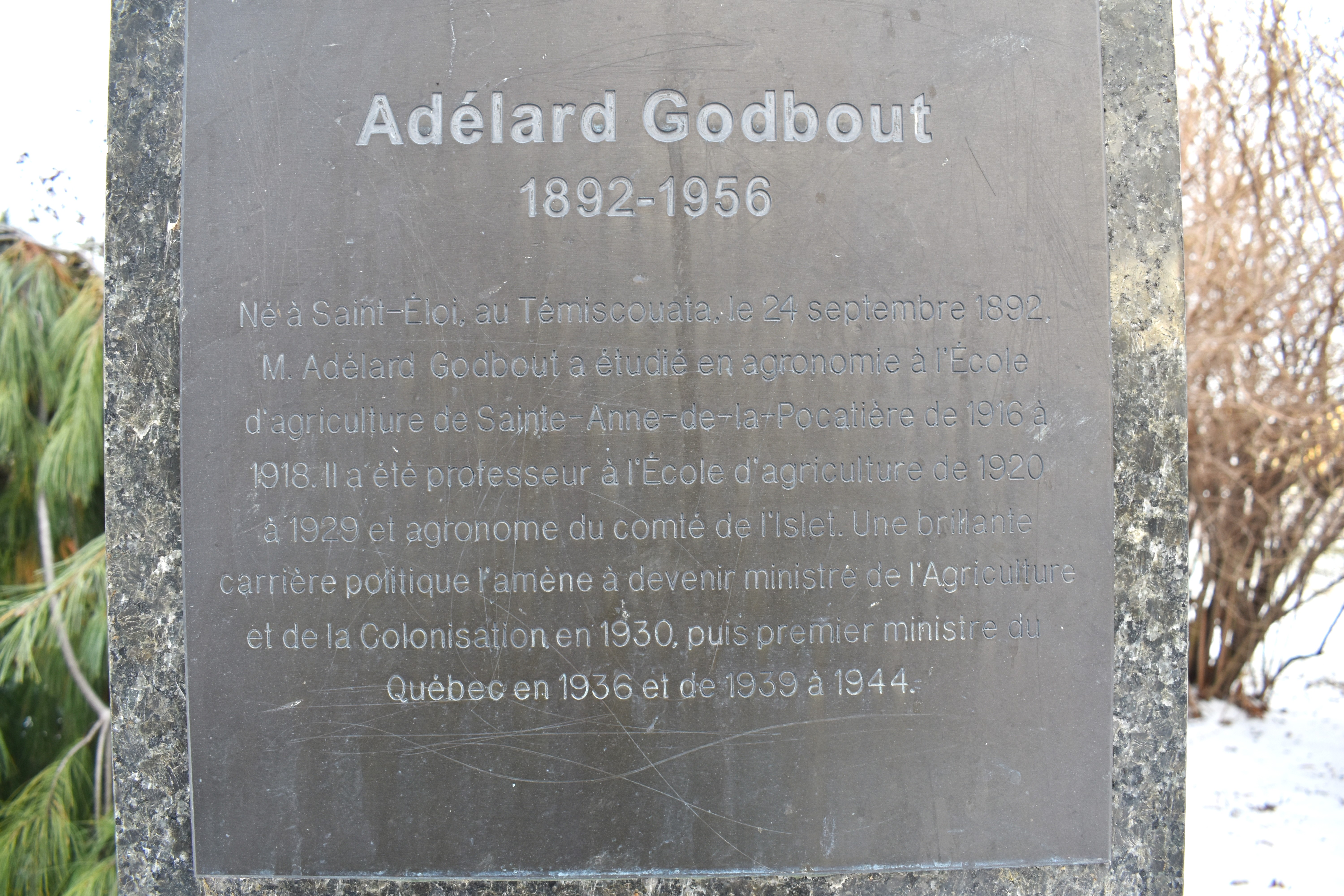 C'est surtout pour souligner ses aptitudes de pédagogue et d'agronome que l'Institut de technologie agroalimentaire honore la mémoire d'Adélard Godbout avec l'ajout de ce monument sur son campus de La Pocatière.