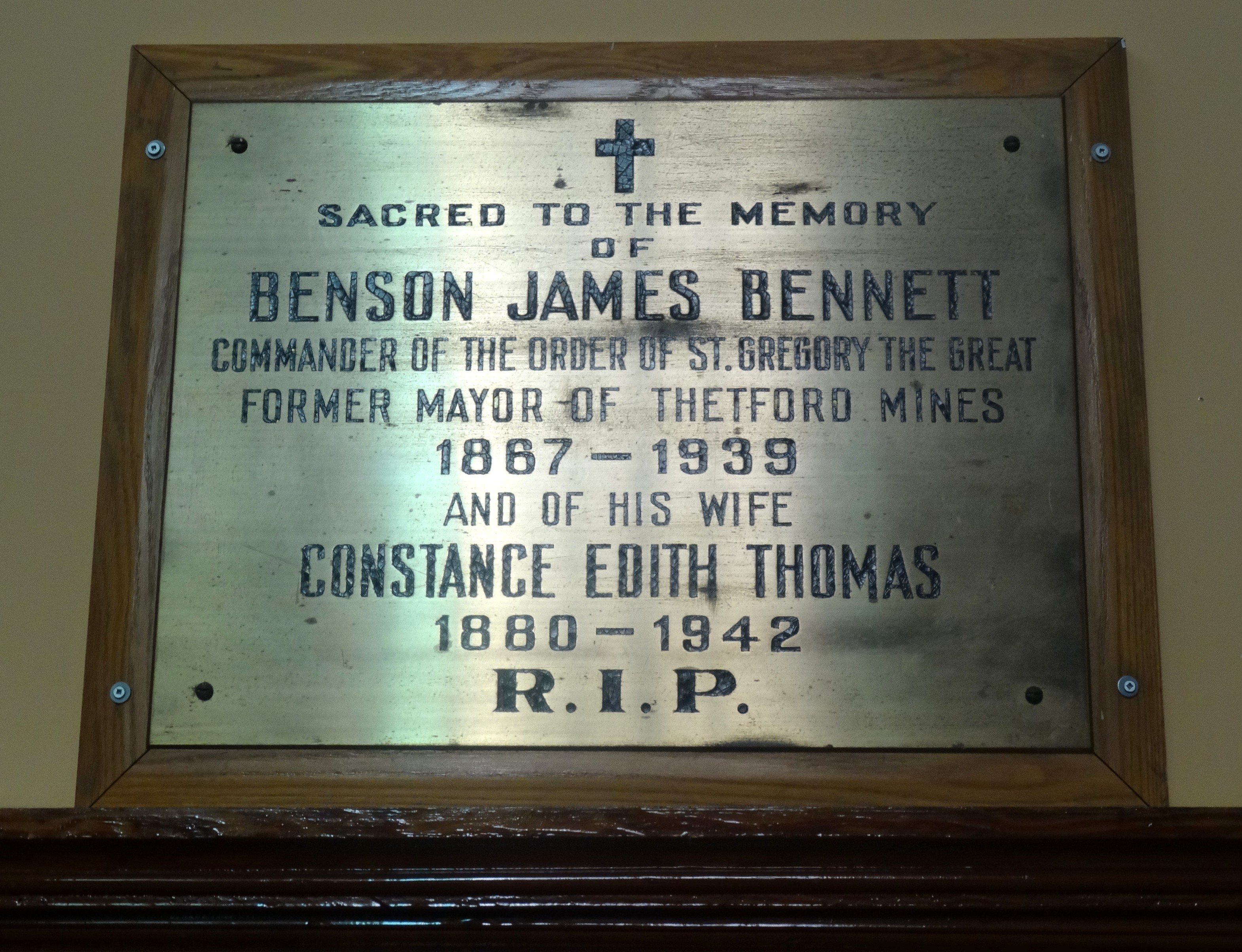 Plaque de Benson James Bennett